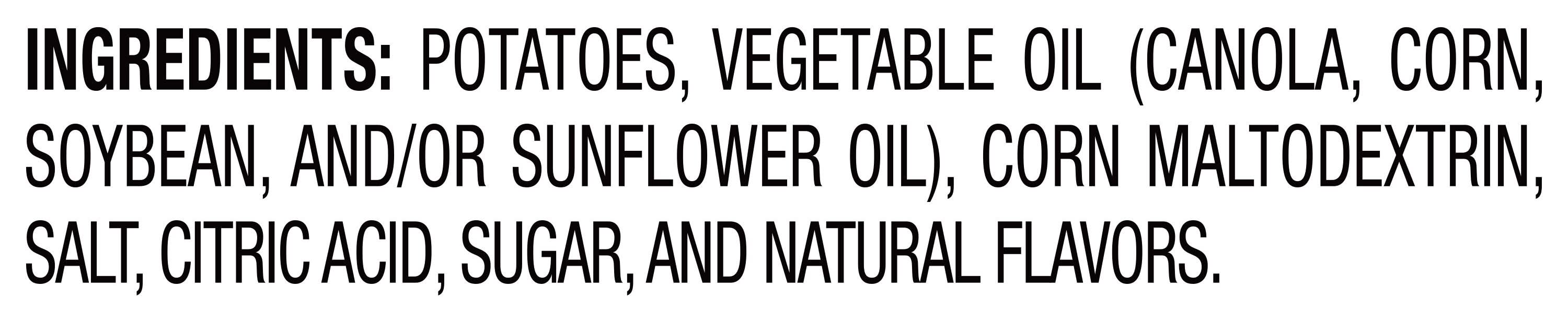 Ingredients: Potatoes, Vegetable Oil (Canola, Corn, Soybean, And/Or Sunflower Oil), Maltodextrin (Made From Corn), Salt, Citric Acid, Sugar, And Natural Flavors. Contains: Corn, Soybeans
