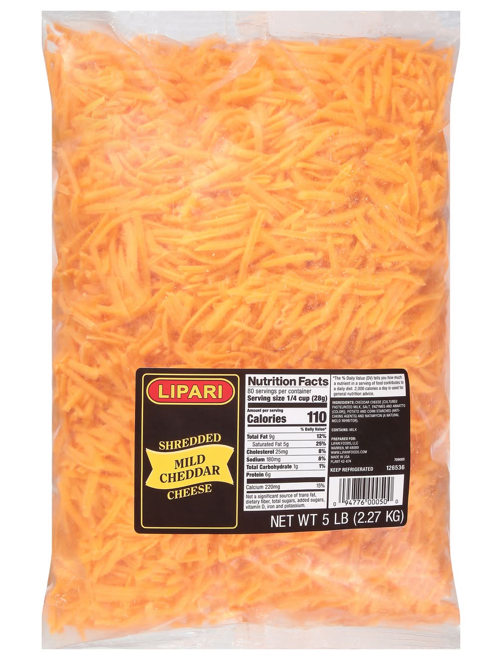Lipari Mild Cheddar Shredded Cheese (5 lbs)