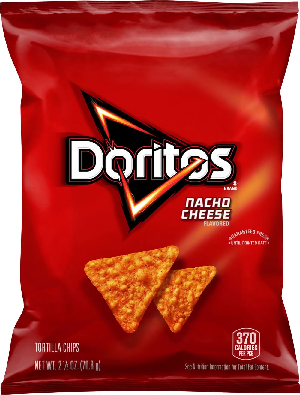 The DORITOS brand is all about boldness. If you're up to the challenge, grab a bag of DORITOS tortilla chips and get ready to make some memories you won't soon forget. It's a bold experience in snacking and beyond. Flavor: Nacho cheese