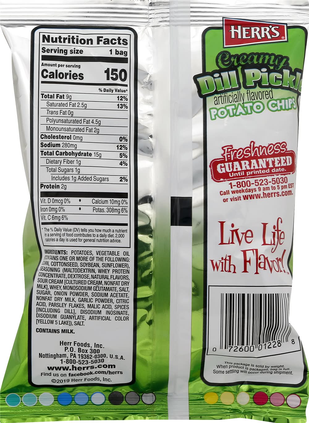 Herr's Creamy Potato Chips, Dill Pickle (1 oz)