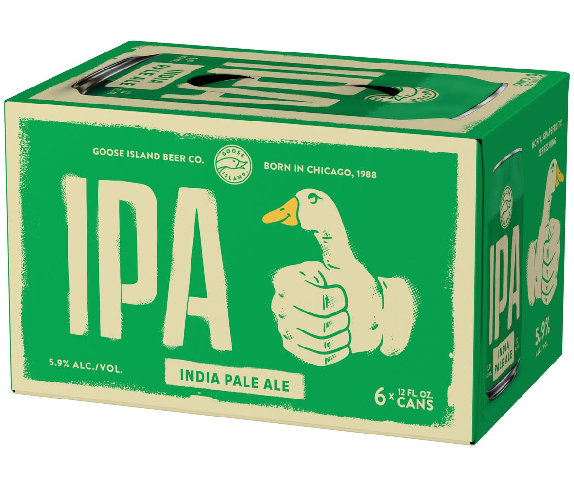 Goose Island's India Pale Ale recalls a time when ales shipped from England to India were highly hopped to preserve their distinct taste during the long journey. The result is a hop lover’s dream with an IPA boasting a fruity aroma, set off by a dry malt middle, and long hop finish. Goose Island IPA pairs well with blue cheese or aged gouda. Founded in Chicago in 1988, Goose Island is one of the most successful craft breweries in the Midwest and produces some of the most popular, and award winning, beers in the U.S. Since 1989, Goose Island beers have won a variety of awards at acclaimed beer events including the World Beer Championships, World Beer Cup, World Expo of Beer and the Great American Beer Festival (GABF) • Brand: Goose island • Pack size: 6 • Alcohol by volume: 5.9% • Goose Island Beer Co., Chicago, IL