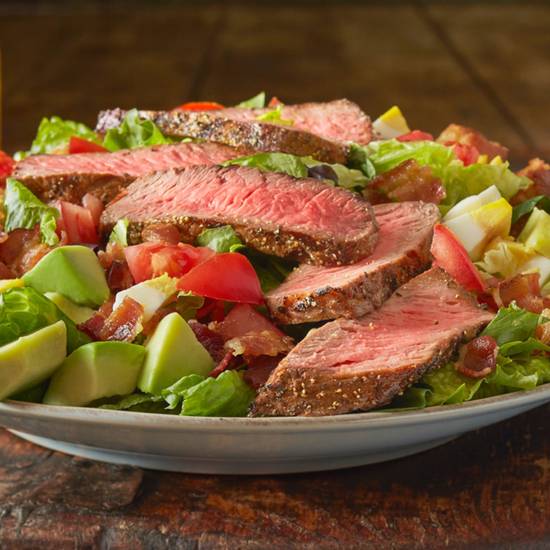 Chopped applewood bacon, diced avocado, chopped egg, bleu cheese crumbles, & diced tomatoes served over a bed of fresh romaine lettuce. 750-1310 cal.