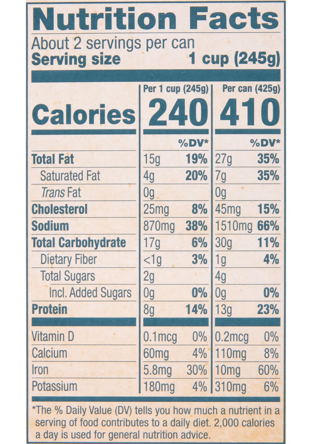 Traditional Recipe Ready to Serve New England Style Clam Chowder Number of servings: 2
