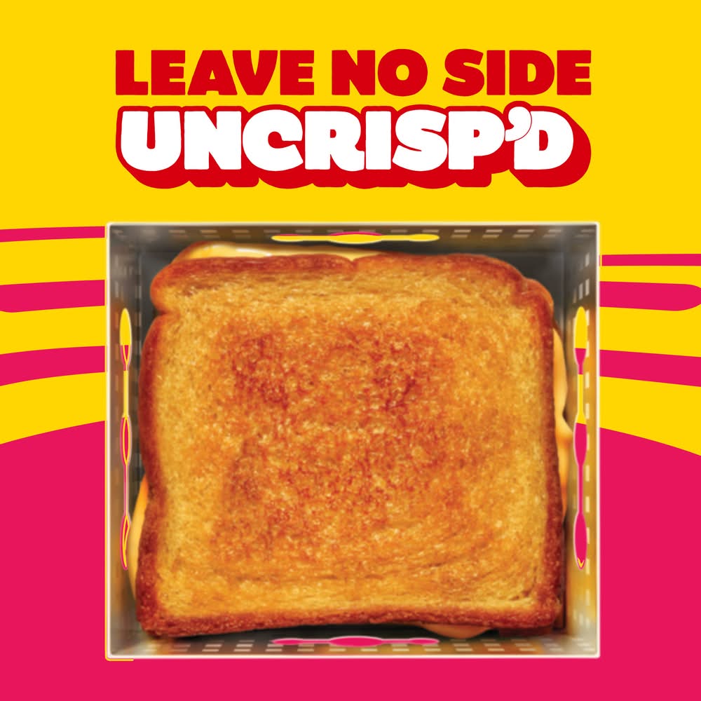 Directions for use: Crispy in 60 let stand for 1 minute 360 crisp. Easy Original Grilled Cheesie Awaits: 1. Remove the plastic wrapper but keep the lid on. 2. Microwave the box on a paper towel for 60 seconds on high (for 1100 watts microwaves). 3. Cool down for 60 seconds and enjoy. Appliance temperatures may vary. Please consider the performance of your appliance when following these instructions. Keep frozen until ready for use. Caution: Tray and contents will be very hot! Do not prepare in conventional or toaster oven. Kee frozen until ready to use. For best quality purchase and use by date shown. Storage recommendation: Kee frozen until ready to use.