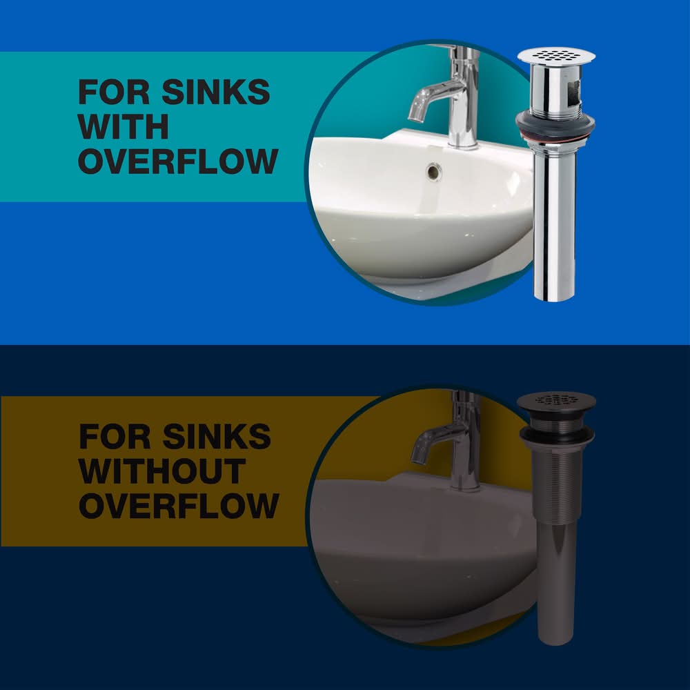 Lift rod pop-up bathroom sink drain. For bathroom sink drains with overflow. Rod lifts and lowers to close and open drain stopper. Complete with lift rod and linkage. Pop-up assembly for easy installation. Chrome finish to match existing bathroom fixtures. 20-gauge brass body for long-lasting use. For CA Residents Only: WARNING: This product can expose you to chemicals including Lead which are known to the State of California to cause cancer and birth defects or other reproductive harm. For more information go to www.P65Warnings.ca.gov.