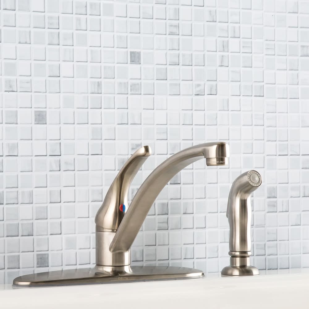 NO-LEAD COMPLIANT: Not all faucets are certified to necessary safety standards so Delta goes above and beyond with product testing and quality to ensure each faucet meets plumbing safety certifications, such as NSF/ANSI Standard 61 . 3-hole 8" installation. Includes convenient side sprayer. ADA Compliant. Standard spout swivels 360 degrees.
