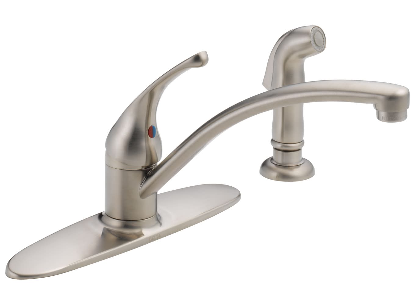 Delta Foundations Stainless Steel Single Handle Deck-mount Kitchen Faucet (Includes Deck Plate) (Includes Side Sprayer)
