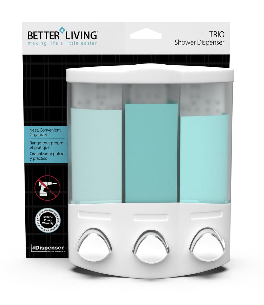 Better Living TRIO 3 Chamber Shower Dispenser, White 14.7-oz Capacity Wall-mount Soap and Lotion Dispenser