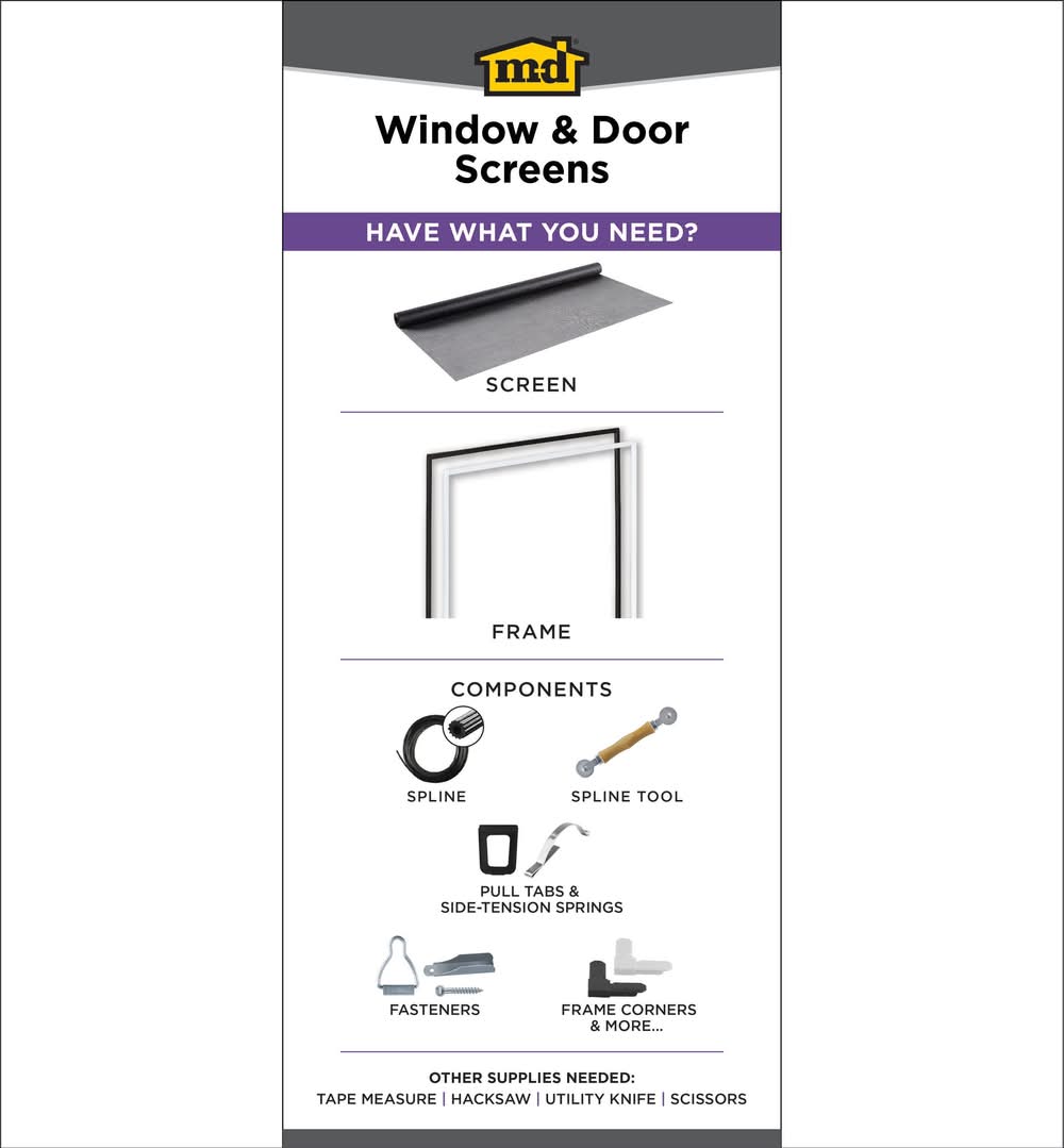 Made of condensed fiberglass. Replaces existing screen or installs in new doors and windows. Easy to install. Charcoal. Fits 1-2 windows or 1 door. Tools needed: frame, spline tool, spline 0.16 in (size may vary based on screen frame), utility knife. Wrinkle-free. Cut to desired length with utility knife or metal snips. For CA Residents Only: WARNING: This product can expose you to chemicals including Lead which are known to the State of California to cause cancer and birth defects or other reproductive harm. For more information go to www.P65Warnings.ca.gov.