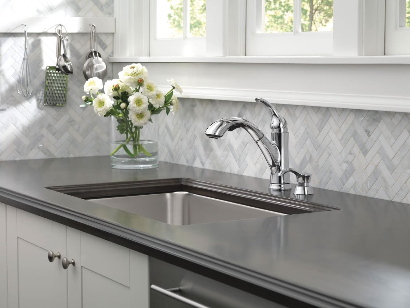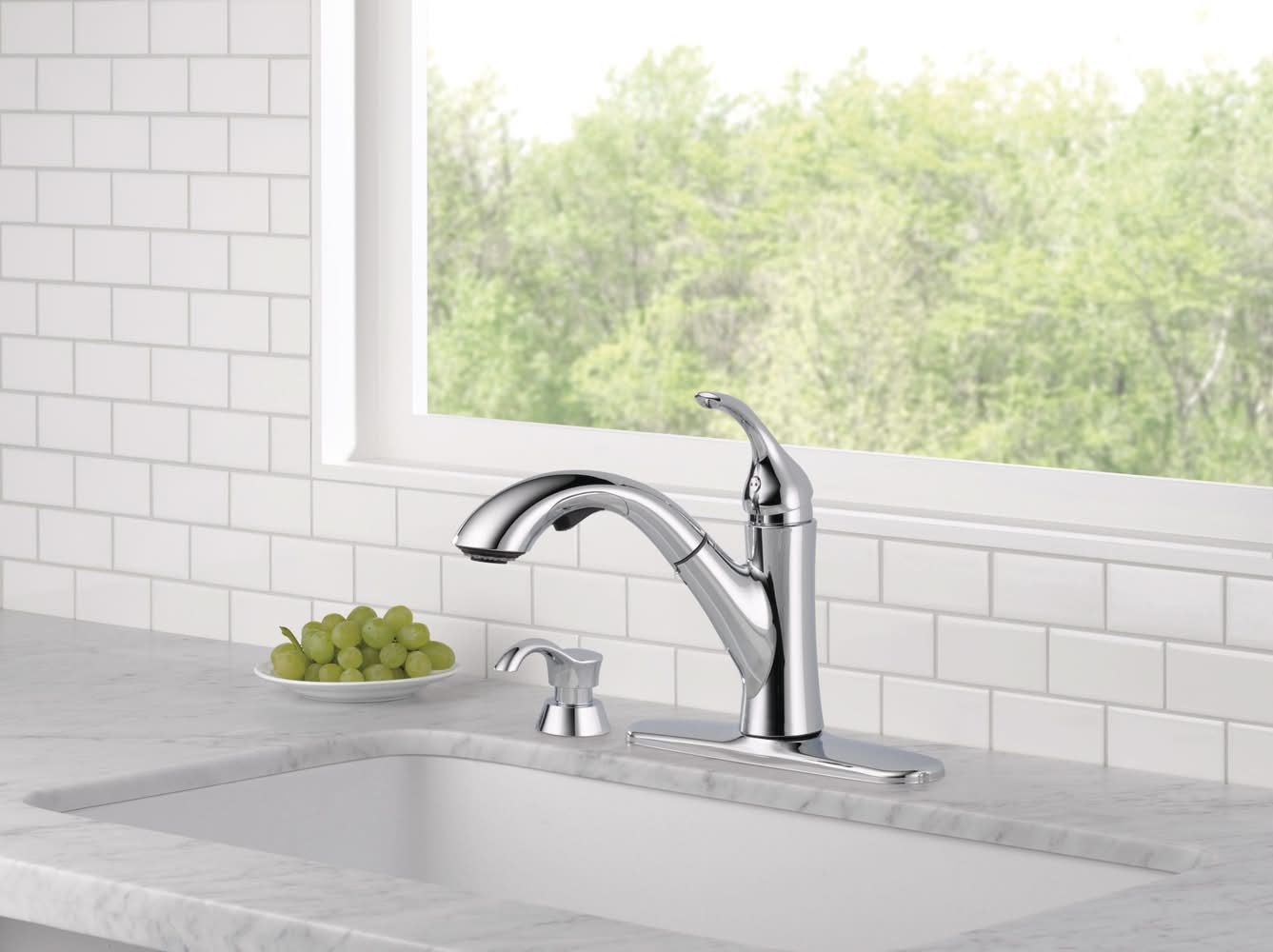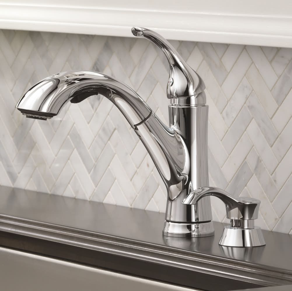 Chrome finish kitchen faucet from the Kessler collection kitchen faucets. 1-, 2-, 3- or 4-hole sink installation options kitchen sink faucets in Chrome finish.. Lever handle is simple to use and makes adjusting water temperature easy Chrome kitchen faucet. Pull-down sprayer with 2 settings offers a convenient way to rinse off dishes or vegetables with pull-down Chrome kitchen faucet. Sink or countertop-mounted faucet offers a seamless look and is easy to install. Limited lifetime warranty covers parts and finish defects. ADA-compliant faucet is easier, safer and more comfortable for those with disabilities or limited mobility to use. Pull-out spout swivels 120degrees. For CA Residents Only: WARNING: This product can expose you to chemicals including Lead which are known to the State of California to cause cancer and birth defects or other reproductive harm. For more information go to www.P65Warnings.ca.gov.