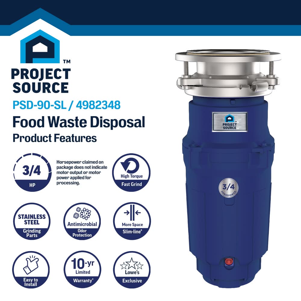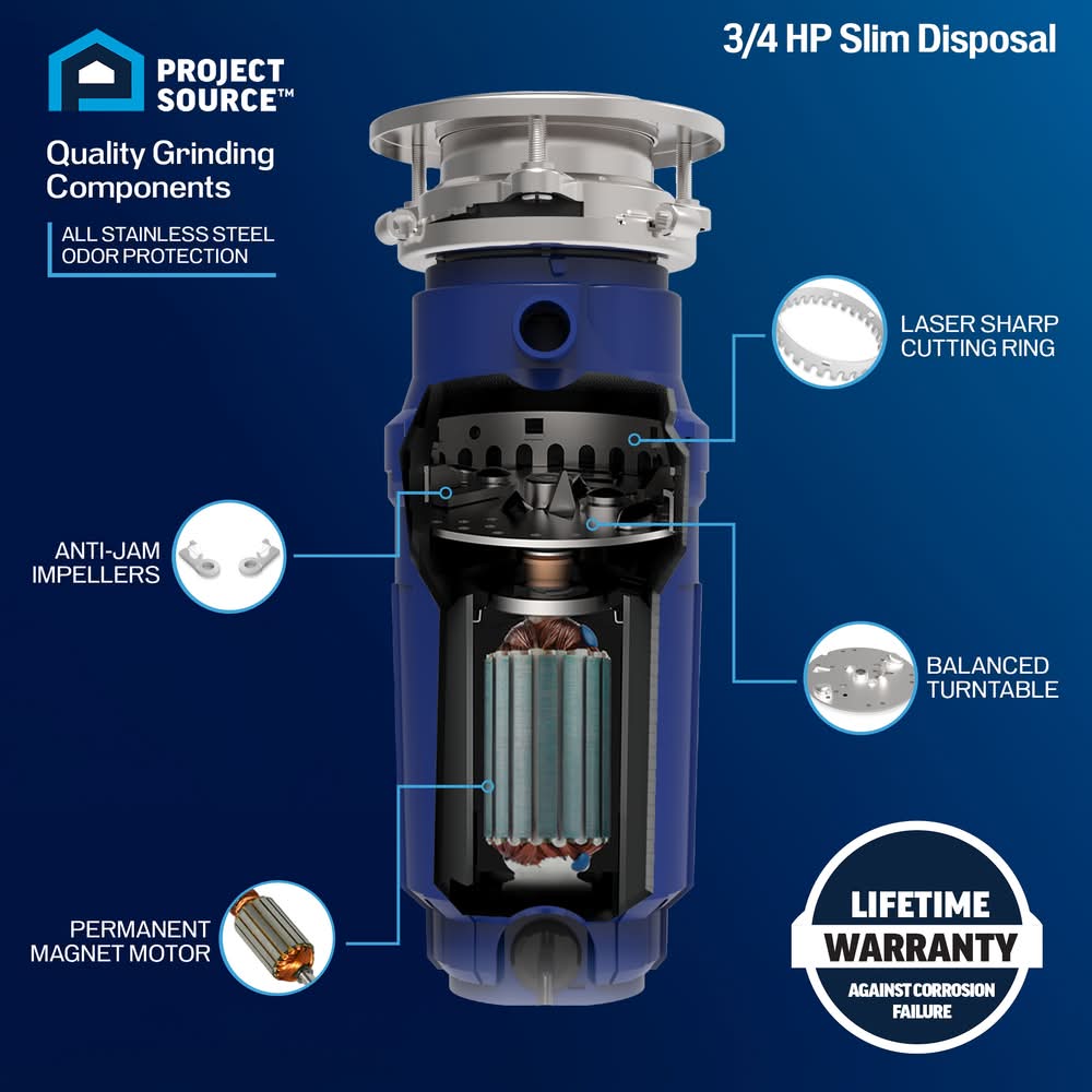 Project Source Continuous feed 3/4-HP Septic Safe Corded Garbage Disposal with Noise Insulation