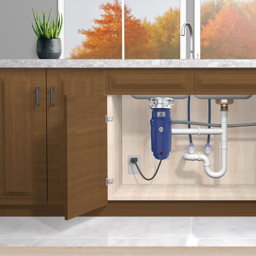 3/4 HP 2700 RPM slim design for smaller spaces; Horsepower claimed on package does not indicate motor output or motor power applied for processing. Universal 3-bolt mount system allows you to easily replace old disposals and allows quick installation of new disposers. Includes removable splash guard making it easier to dispose of bulk foods, clean, and locate fallen items. Motor reaches full torque with initial rotation, reducing jams and removing the need to purchase a disposal key. Equipped with a balanced grinding system, perfectly balanced to reduce vibration and sound. Pre-installed power cord can be removed for hard-wiring using the instructions in the owner’s manual. This garbage disposal is specially designed to be safe for properly sized and maintained septic tanks; it has a special grinding mechanism that breaks down food waste into small particles that can be easily processed by your septic system. Color: Blue
