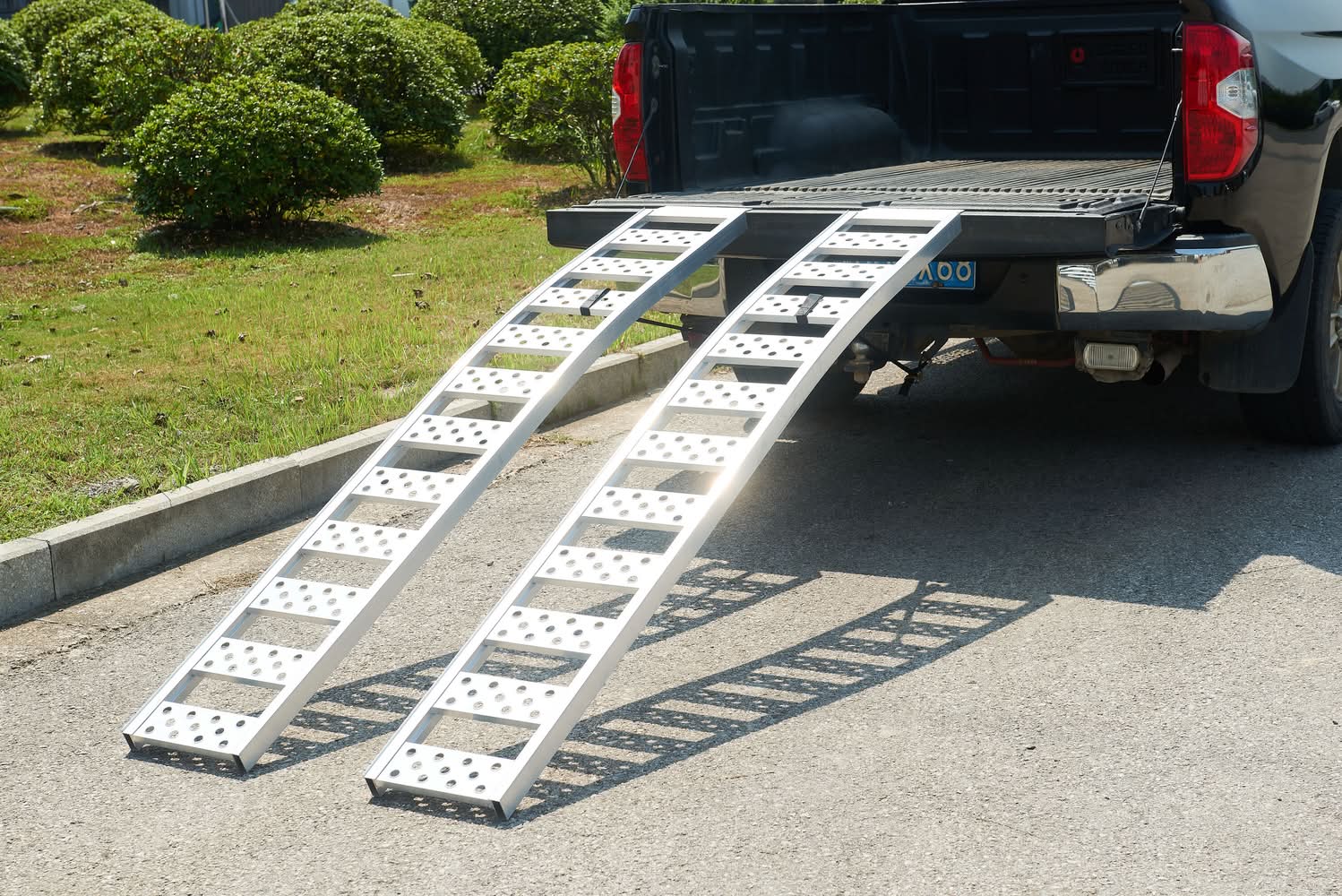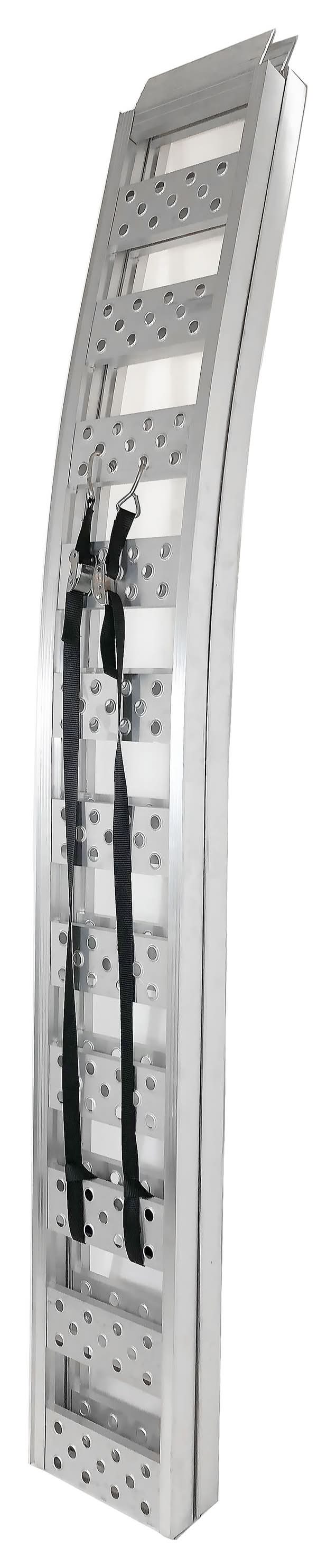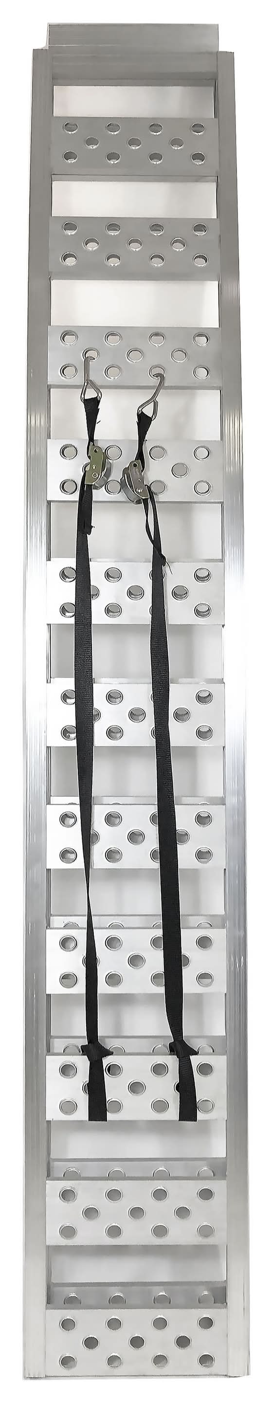 12 in wide x 90 in long. Capacity:1500-lb per pair (750-lb per ramp). Rustproof aluminum construction for long lasting. Includes adjustable straps for secure loading. For loading ATV, motorcycle, snowblower, or garden tiller. For CA Residents Only: WARNING: This product can expose you to chemicals including Lead which are known to the State of California to cause cancer and birth defects or other reproductive harm. For more information go to www.P65Warnings.ca.gov. Color: Silver