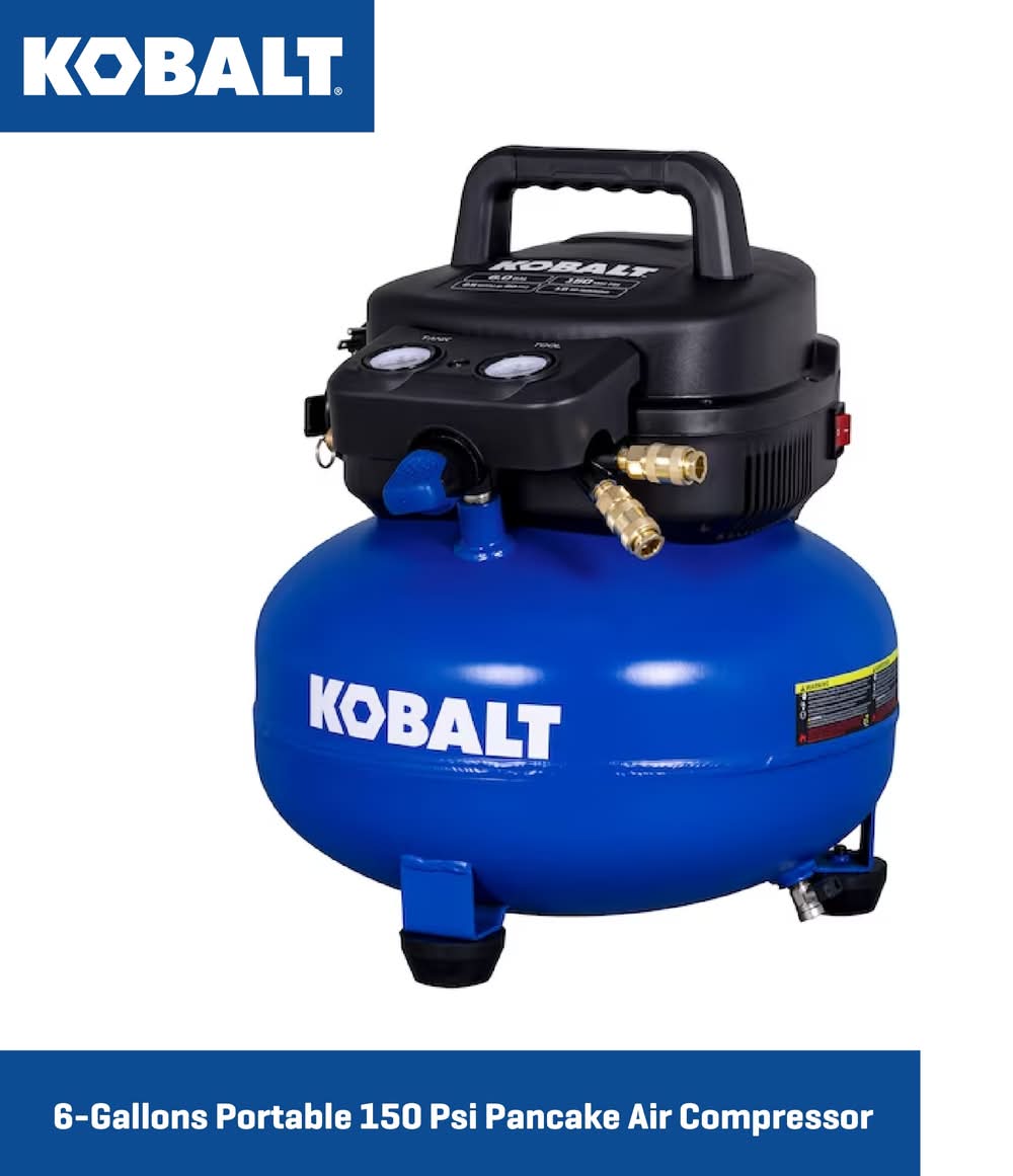 Kobalt 6-Gallon Portable Electric 150 PSI Pancake Air Compressor with Accessories Included