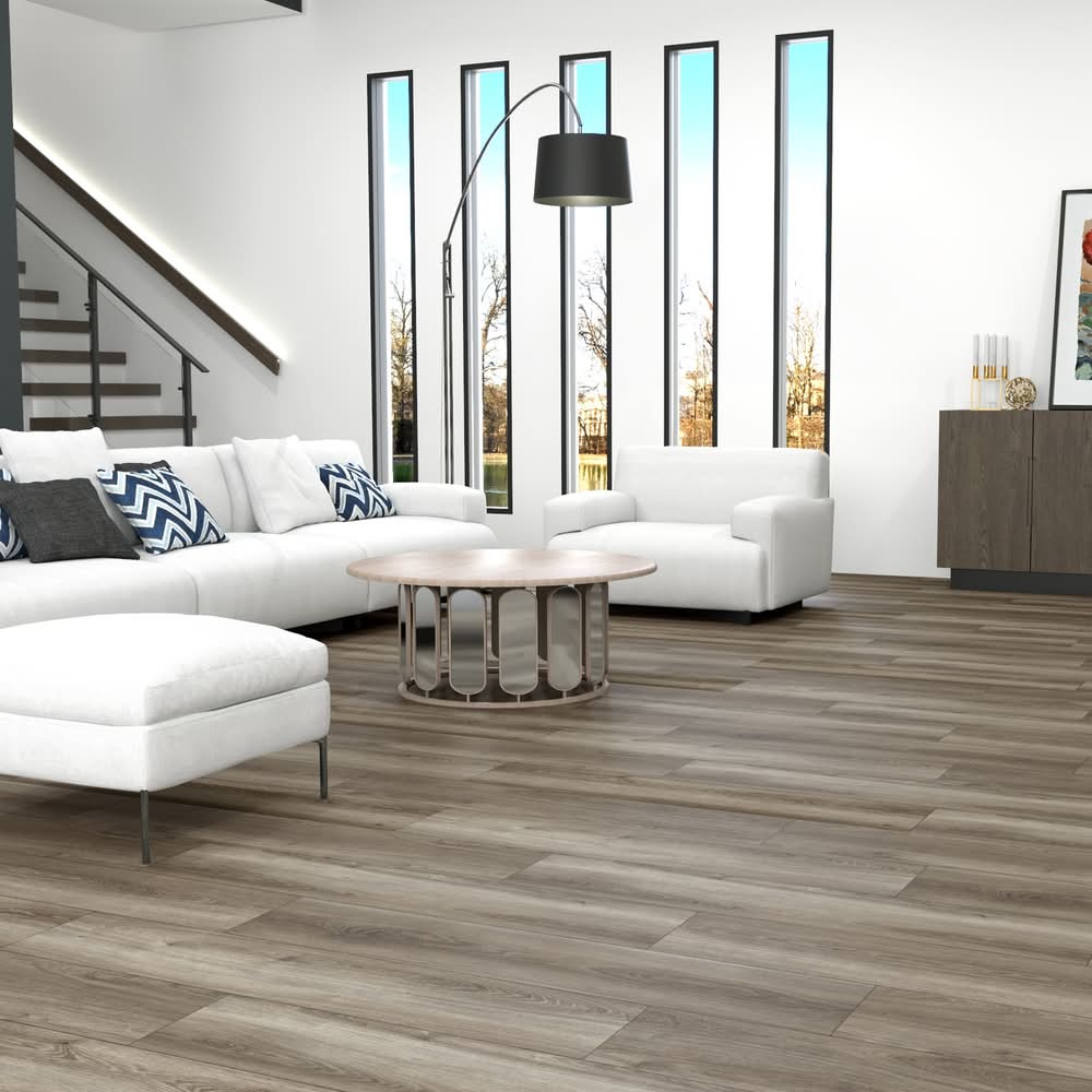 STAINMASTER Pet Protect Waterproof Laminate Flooring is durable, stain- resistant, and easy to clean—ideal for living areas, kitchens, hallways, & more.. Our CLAWSHIELD™ resists pet scratches and ACTIVELIFE SHIELDTM provides dent and abrasion resistance, and makes floors easy to clean.. Features an AC4 rated wear layer and a waterproof surface that is 2X more wear-resistant than standard residential grade laminate. Pheasant Lane Oak is a mix of darker and lighter gray toned wood-based laminate floor showcasing movement with a low-gloss realistic texture so you can feel the grain pattern.. Pre-attached 2mm acoustic padding underlayment offers sound absorption and reduces installation time and cost.. DIY-friendly locking system tightly interlocks planks for a seamless surface—install easily or choose Lowe’s professional installation for added convenience.. 12mm total thickness (10 mm plank + 2mm attached pad); 7.48-in W x 50.67-in L planks cover 23.69-sq ft per carton; 9 planks p For CA Residents Only: WARNING: This product can expose you to chemicals including Lead which are known to the State of California to cause cancer and birth defects or other reproductive harm. For more information go to www.P65Warnings.ca.gov. Color: Gray