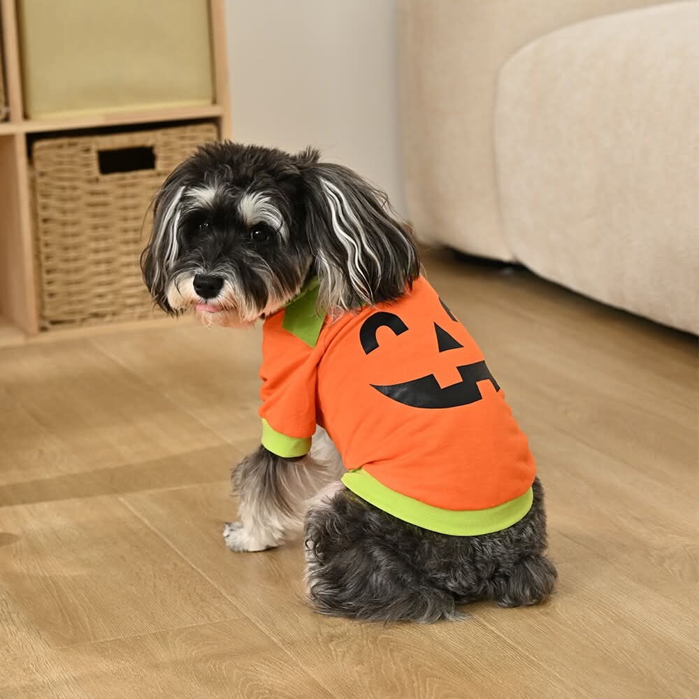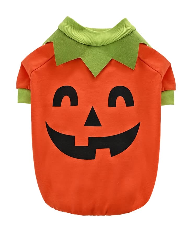 Cheerful jack-o'-lantern face will add a playful touch to your pet’s wardrobe. Comfortable, user-friendly pullover design makes dressing and undressing your pet quick and hassle free. Soft and stretchy material offers a cozy fit that won’t restrict your pet’s movements. Use Location: Indoor/Outdoor Color: Orange