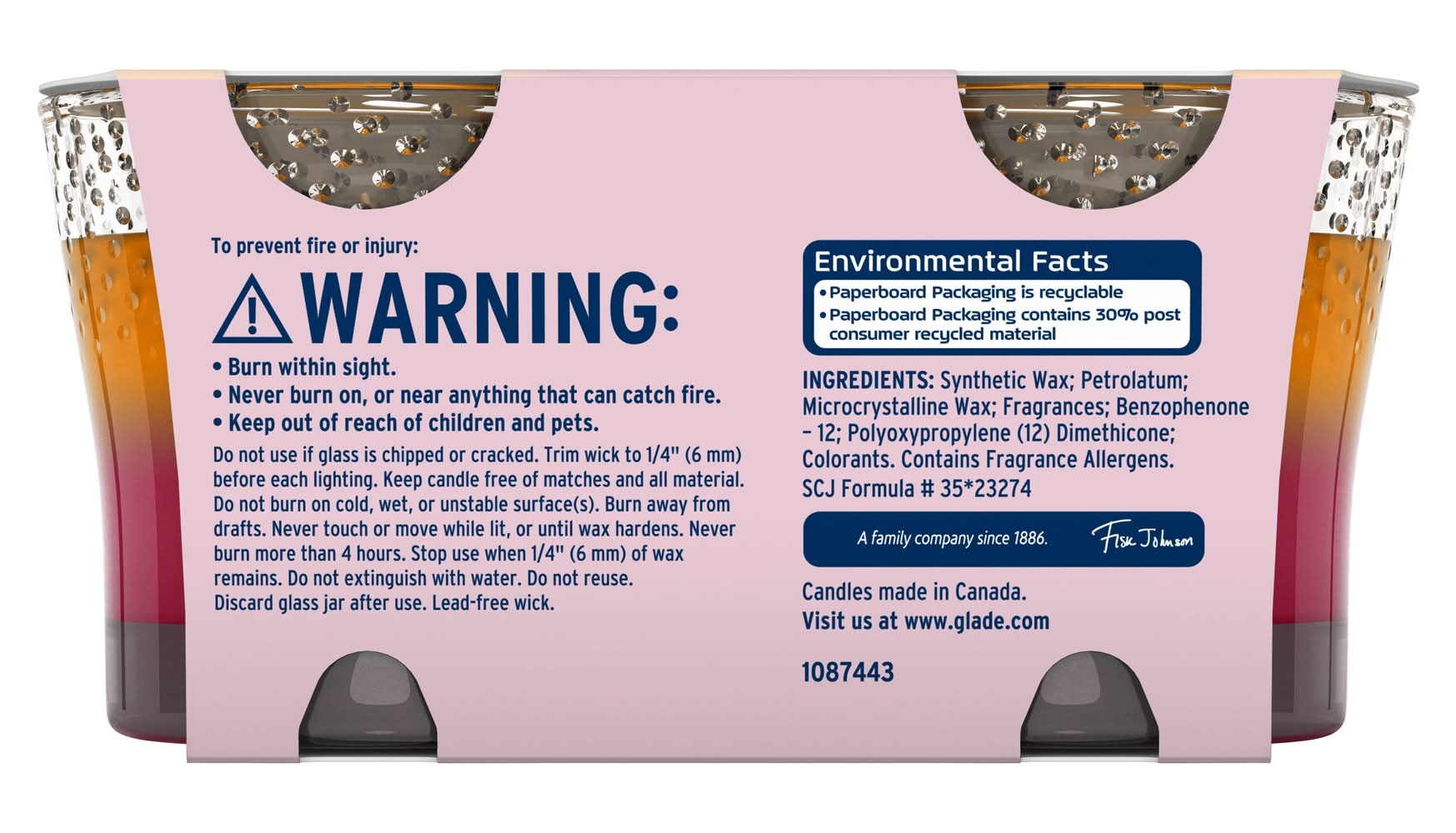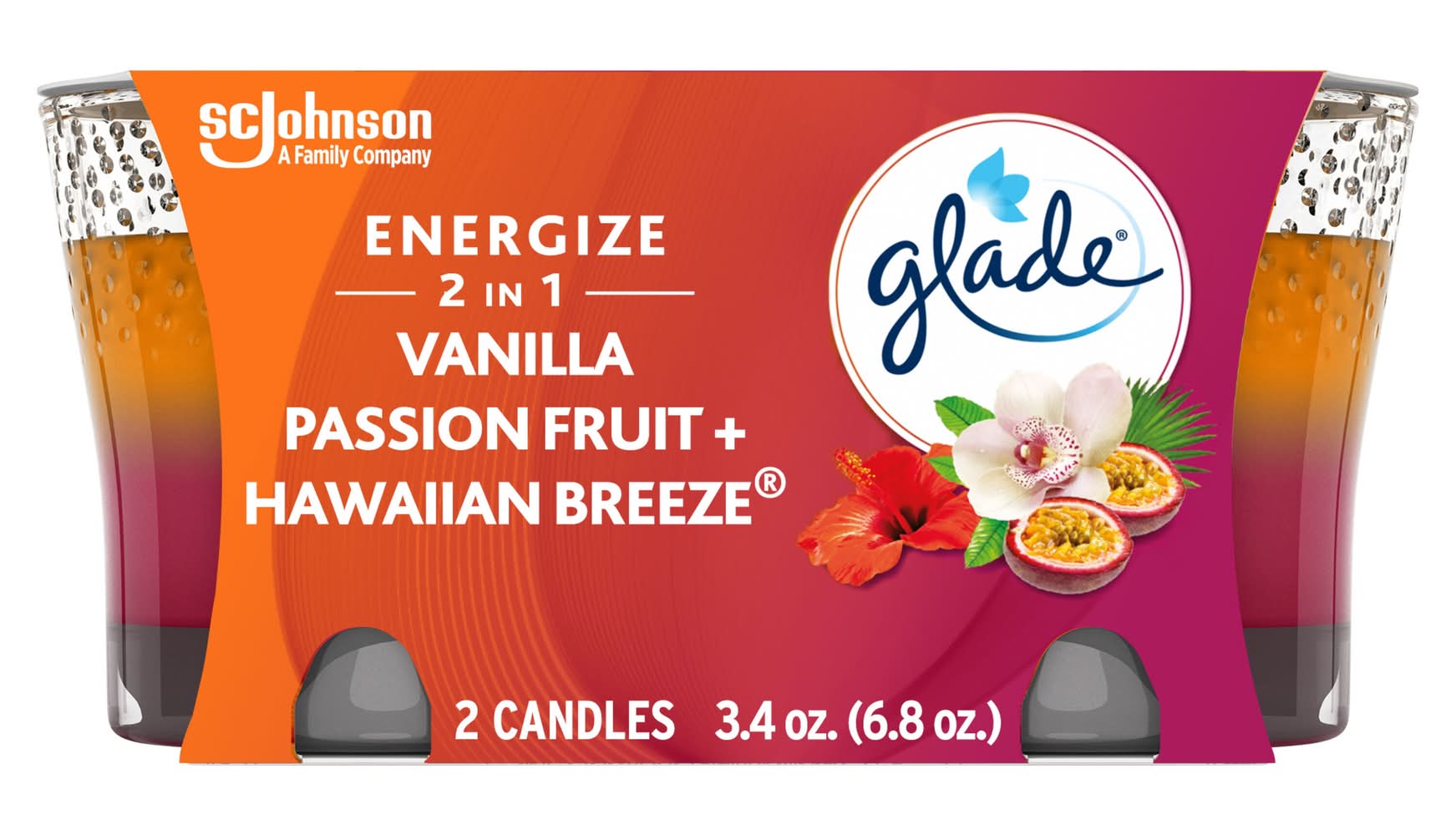 Meet your next go-to candle and awaken your senses with the room filling fragrance of the expertly crafted Glade Vanilla Passion Fruit & Hawaiian Breeze scented candle. Discover the scent treat you've been searching for with these small scented candles – you'll definitely want to take a second smell and set a relaxing vibe. Surround yourself with scent and a soft glow with the Glade Vanilla Passion Fruit & Hawaiian Breeze 2-in-1 candle which features calming notes of passion fruit, creamy vanilla and coconut water artfully paired with ripe pineapple, hibiscus, and peach nectar.. These fragrant candles are expertly crafted by master perfumers – with fragrance infused with essential oils and made without phthalates, parabens, formaldehyde or nitro musks. Whether it's Me-time relaxing with a book or a luxurious bath, discover the art of light and scent with our candle and reward your ritual. Use Location: Indoor • Color: Orange • Packaging: Reusable