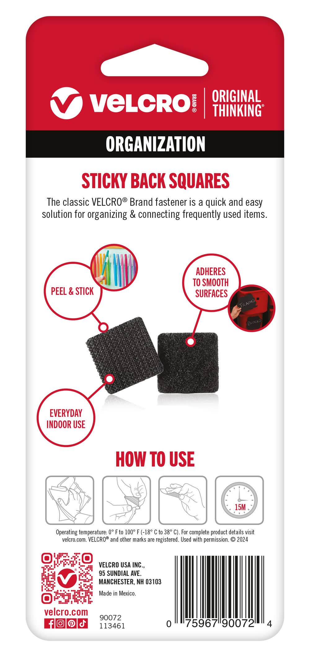 VELCRO Brand 0.875 Inch Black Hooks Sticky Back 7/8in Squares Black Hook loop fastener .01-sq ft 12 -Pack