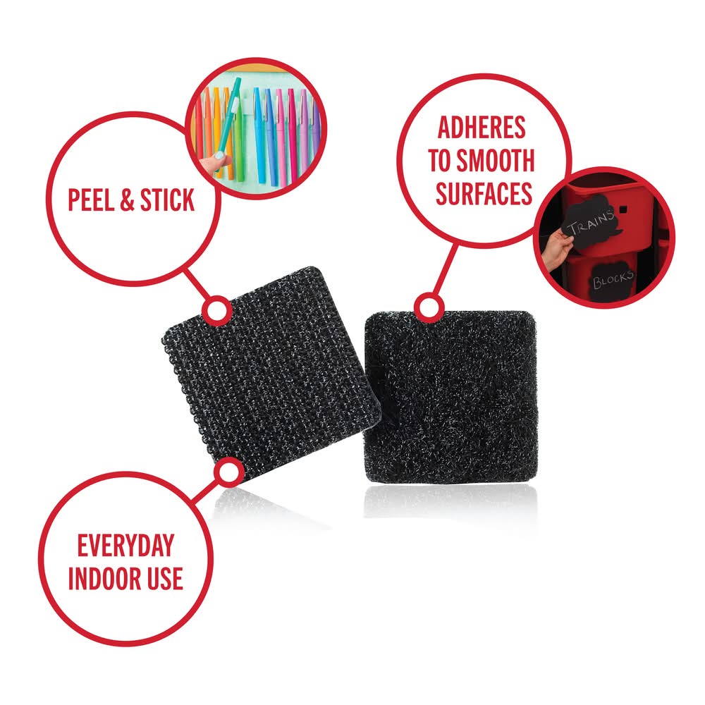Simple peel and stick application. Adheres to smooth surfaces. Durable long lasting nylon construction. Designed for indoors. Color: Black
