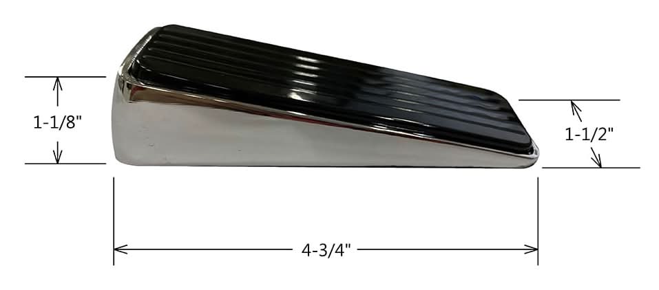This 4-3/4-in heavy duty door stop wedge is designed for both residential and commercial use. Made of durable zinc metal die-cast body with plastic top and bottom to grip door and floor. Features a non-marring grip surface on top and bottom. No installation required. Designed to work well when the space between bottom of door and the floor is not more than approximately 1-1/8-in.