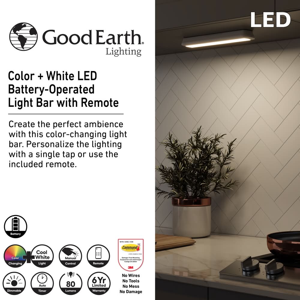 Good Earth Lighting 9.5-in Battery LED Under Cabinet Light Bar with Remote