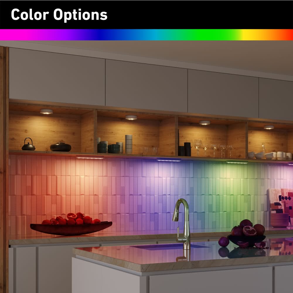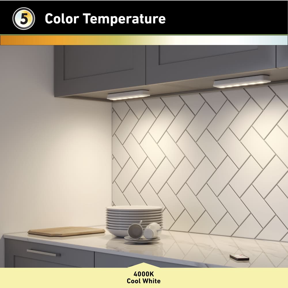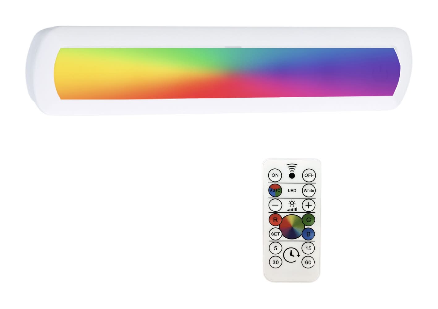 Customize the color to any specific RGB color or 4000K cool white. Damage-free mounting with Command™ Strips from 3M (no marks or sticky residue) or screws for permanent use. Remote or manual control: Tap to turn on, change colors, and turn off. Infrared (IR) remote operates both light bars up to 20 feet away. Dimmable: Easily adjust the brightness with the remote. Extend battery life: Choose from auto-off timer settings (1, 5, 15, or 30 minutes) on the remote. Easy battery access compartment: Slide light bar off the mounting plate without removing the Command™ Strips. Includes (1) 9-inch LED light bar, (6) AA batteries, (1) remote, (2) Command™ Medium Refill Strips, and (2) screws. 80 lumens, 80 CRI, 20,000 hours of LED life, and 6-year limited manufacturer warranty. For CA Residents Only: WARNING: This product can expose you to chemicals including Lead which are known to the State of California to cause cancer and birth defects or other reproductive harm. For more information go to www.P65Warnings.ca.gov. Color: White