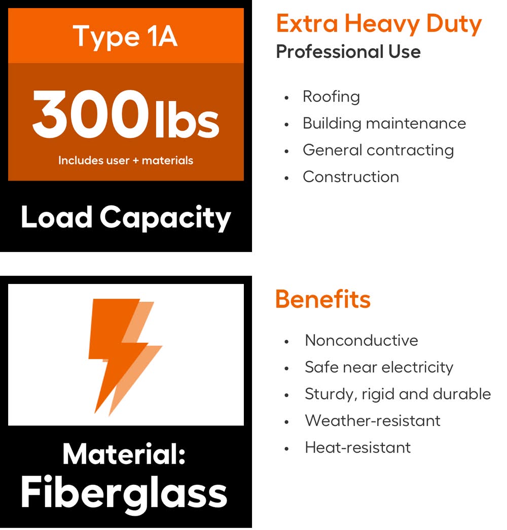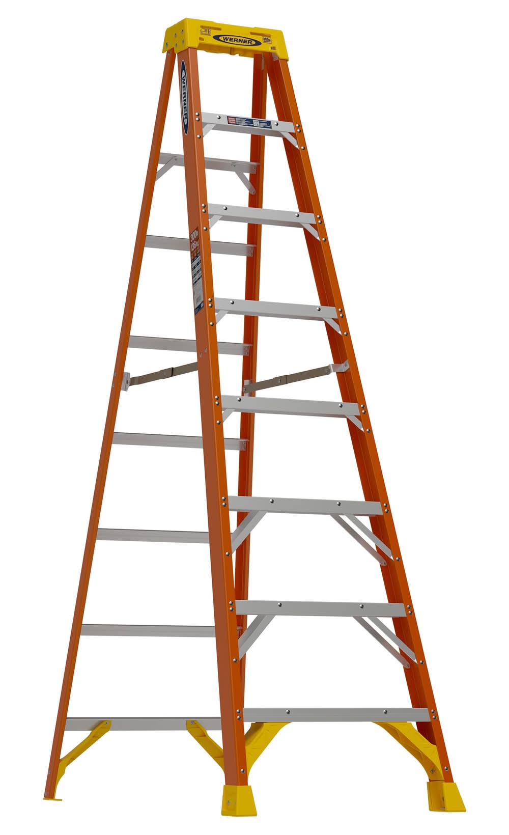 Werner NXT1A08 8FT(12FT 3IN MAX SAFE REACH HEIGHT) Type IA 300 lb Load capacity durable fiberglass step ladder. Fiberglass rails are non-conductive for working near electricity. Maximum productivity LOCKTOP ladder top safely holds an arsenal of tools, including a patented impact driver slot, 3 tether points and magnetic accessory holder. Lock-In accessory compatible for expanded productivity. EDGE 360 Bracing Designed for Drop Protection, stability and Slip Resistance. Fully braced steps provide maximum durability. External Pinch-Proof spreaders open and close easily. Traction-Tred steps are slip-resistant. Engineered for versatility from professional jobsites to DIY projects and home repairs. Color: Orange