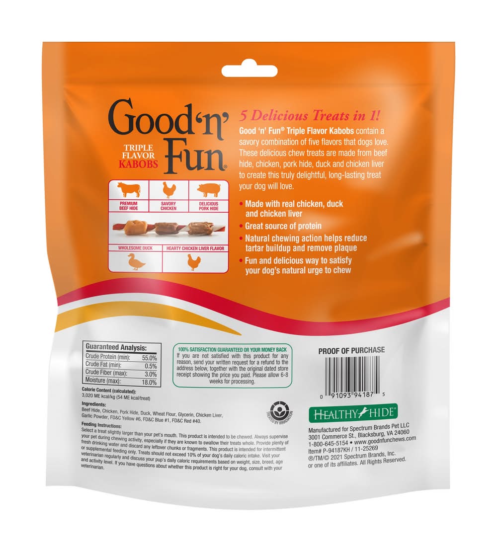 Good 'n' Fun Triple Flavor Kabobs Rawhide chews for Dog Variety Flavor Count
