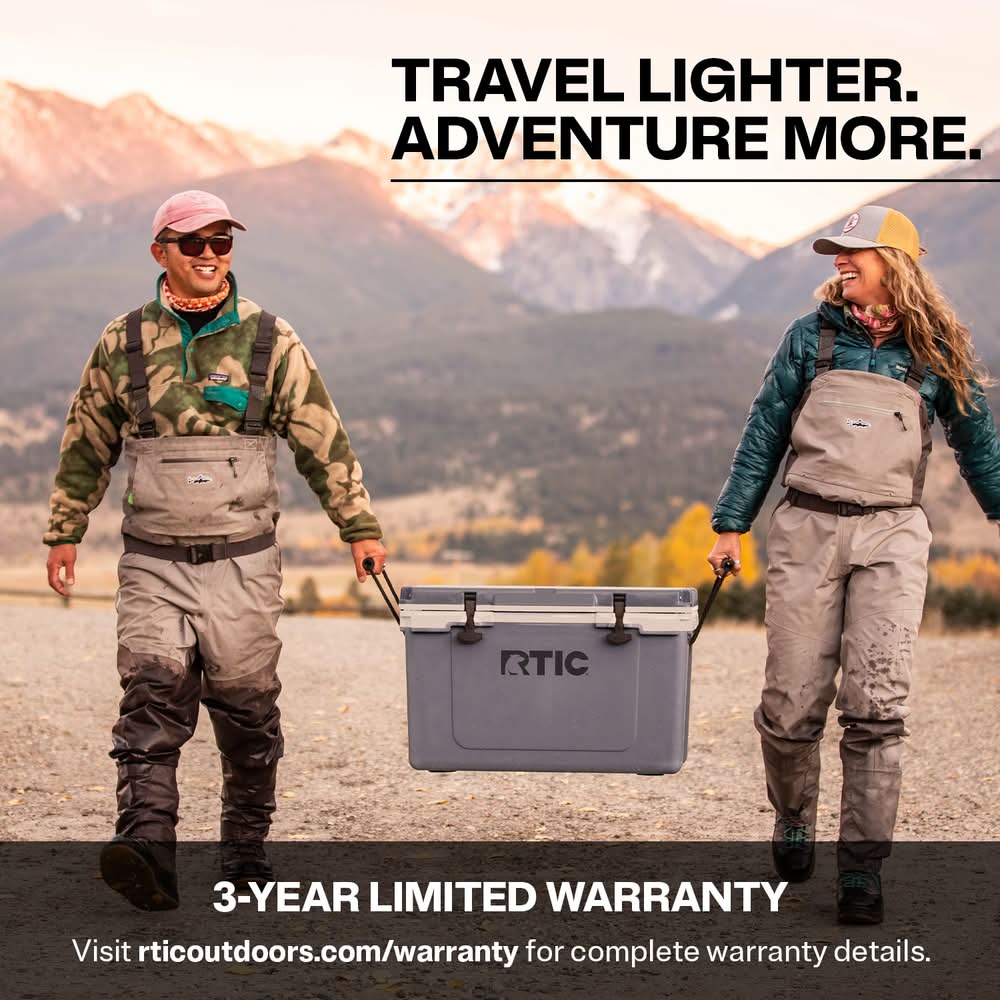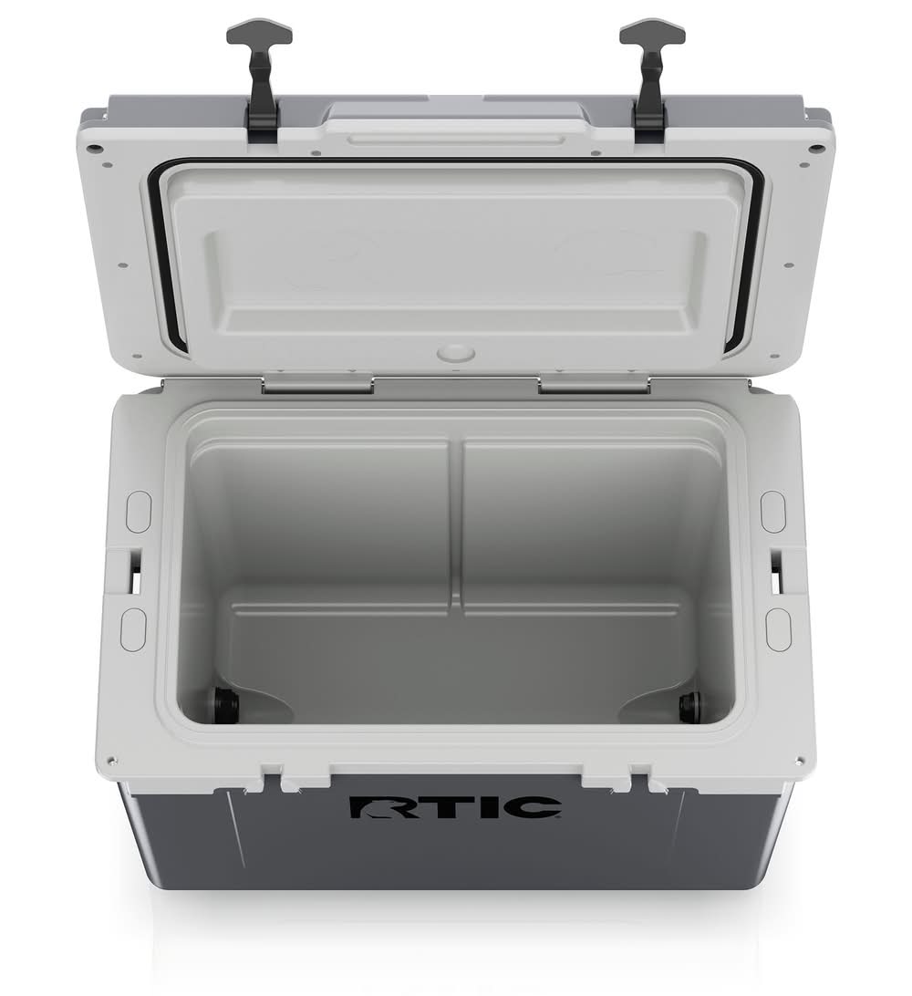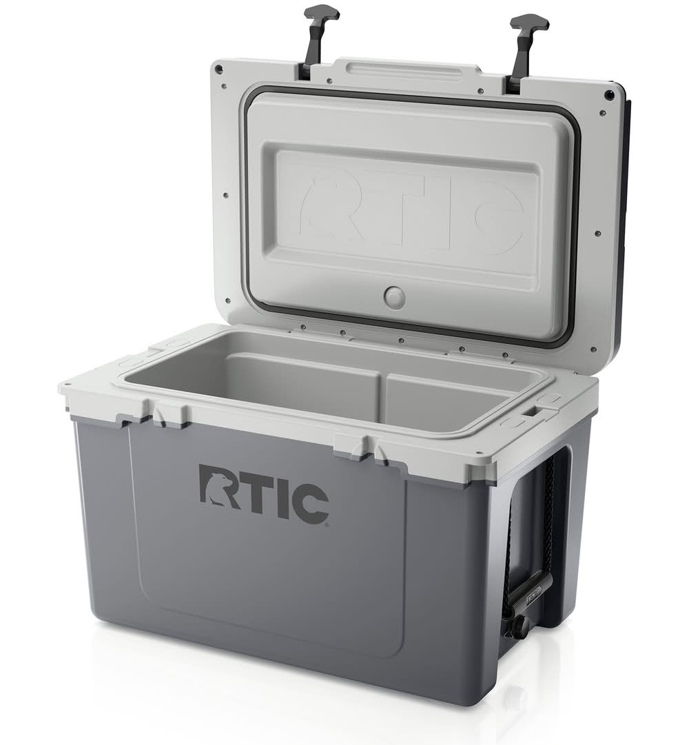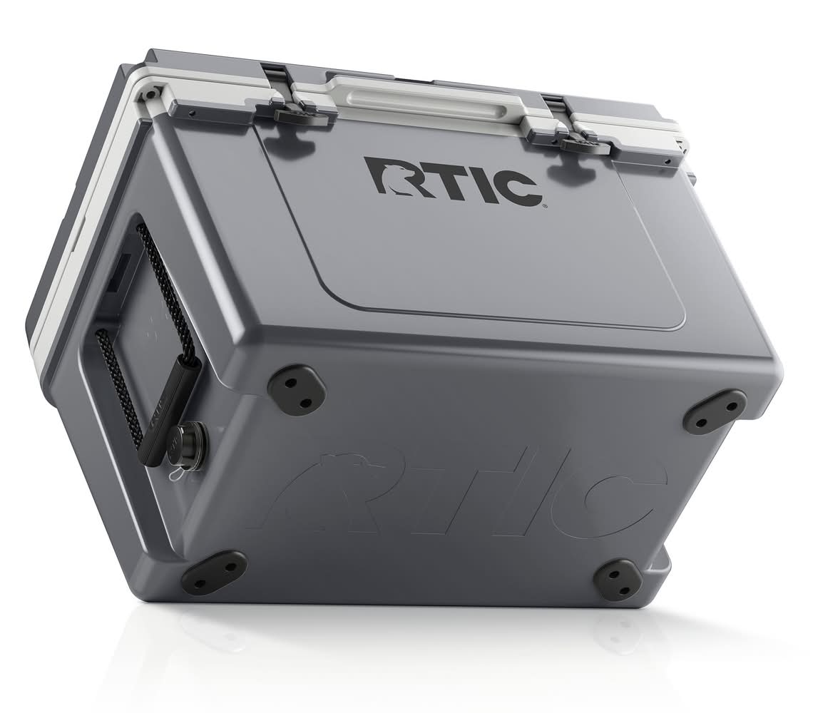 RTIC Ultra-Light Construction makes this cooler up to 30% lighter.. Up to 3 inches of Closed Cell Foam Insulation locks in the cold for up to 7 days.. Rapid V-Drain System (Dual Drain Holes) for easy, hands-free draining.. Marine-Grade Rope Handles feature durable hand grips for easy carrying and lifting of the cooler.. Molded Tie Down Slots can be used to attach the cooler to a boat, trailer, or truck bed.. Non-Skid Rubber Feet keep the cooler in place even on smooth or slippery surfaces.. Integrated Lock Holes allow the cooler to be secured shut with personal locks.. The lock size for our coolers is a long shank lock with a 5/8" shackle.. Color: Gray