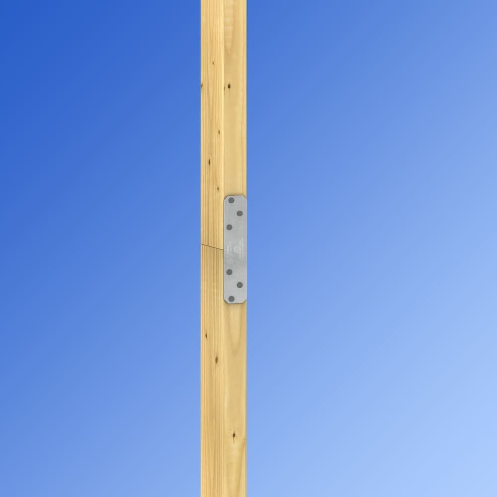 A versatile, heavy-duty strap for a variety of connections and splices where extra strength is needed. Straight lines and chamfered edges offer a better appearance. Provides support in home repair and construction projects. Easy nailing pattern for connecting the sides of 2x members. Width: 1-3/8-in. Length: 6-in. Made from 12-gauge steel. Galvanized (G90) for extra corrosion resistance. Install with 10d common nails or #9 x 1-1/2-in Strong-Drive SD screws.