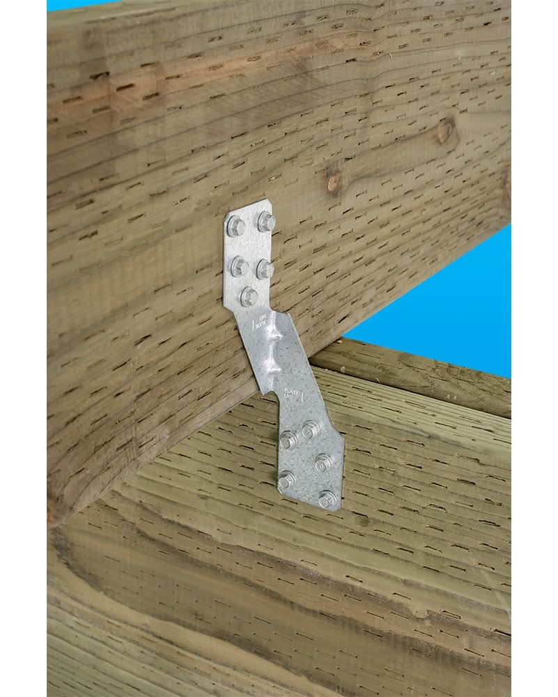 Embossments in bend line strengthen connection. The top flange features an arrow line indicator to aid correct installation. Made from 18-gauge steel. ZMAX galvanization offers extra corrosion resistance for exterior and treated-wood applications. Install with (10) 0.131-in x 2-1/2-in nails or (10) #9 x 1-1/2-in Strong-Drive SD screws.