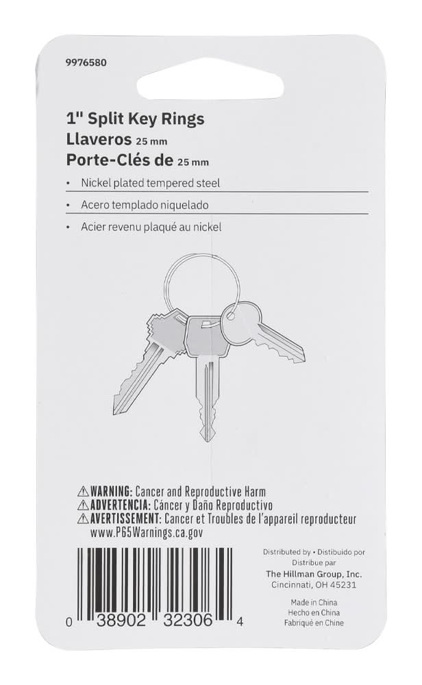 2 split rings per retail package. Ideal for carrying keys and membership cards. Easily attach and detach keys. Maintains shape with repeated use. For CA Residents Only: WARNING: This product can expose you to chemicals including Lead which are known to the State of California to cause cancer and birth defects or other reproductive harm. For more information go to www.P65Warnings.ca.gov. Color: Silver