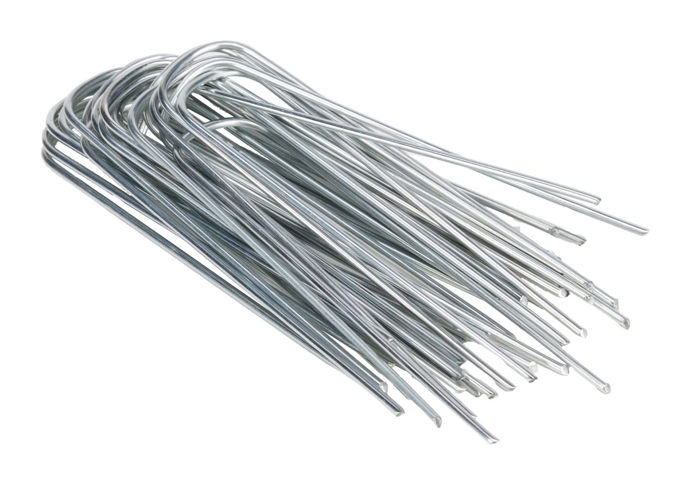 Crafted from 14-gauge steel for durability and long-lasting performance with beveled edges with a sharp point make it easy to penetrate soil for secure installation. Perfect for use in securing turf, sod, artificial grass, landscape fabric, weed barriers, erosion control, and soaker hoses, as well as holiday decorations and yard ornaments like blow-up characters.. U-shape design provides two points of contact, simplifying the installation process and offering a stable hold for any landscape project.. Flexible construction allows for easy adjustment of width to fit your specific placement needs.. For installation, a rubber mallet is recommended, especially for compacted or clay soil, along with light gardening gloves for comfort and ease of use..