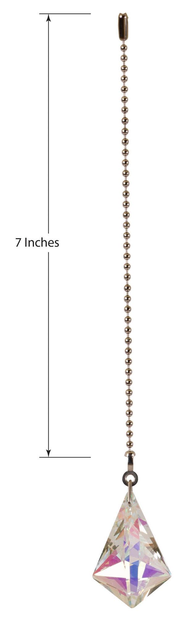 Features premium crystal prism that creates a stunning rainbow effect when exposed to sunlight. Replacement for broken pull chain or as a decorative accent. Unique design compatible with most fans and light fixtures. High Quality. Transitional/modern design complements an array of design styles. Adjustable Length - Simply cut your desired length of pull chain before installation. Indoor Use Only. Use Location: Indoor Color: Multiple colors/finishes