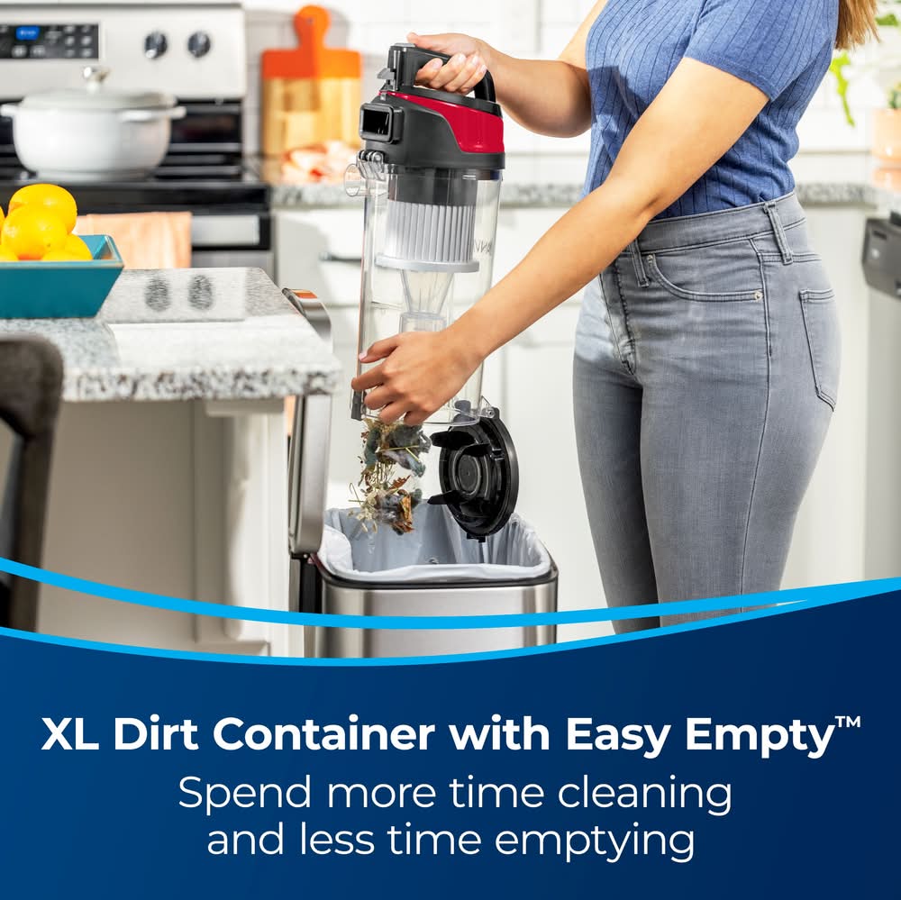 Active Wand makes cleaning hard-to-reach areas quick and easy. Cleans carpet on the first pass and captures messes on hard floors with less scatter. XL Dirt Container holds up to 2 liters of debris. Spend more time cleaning and less time emptying. Multi-Cyclonic Suction System: Multi-Cyclonic Suction System with no loss of suction. Multi-Level Filtration helps reduce common household allergens. Removes most surface debris based on visual test BTP0221. BISSELL proudly supports BISSELL Pet Foundation and its mission to help save homeless pets. Color: Black