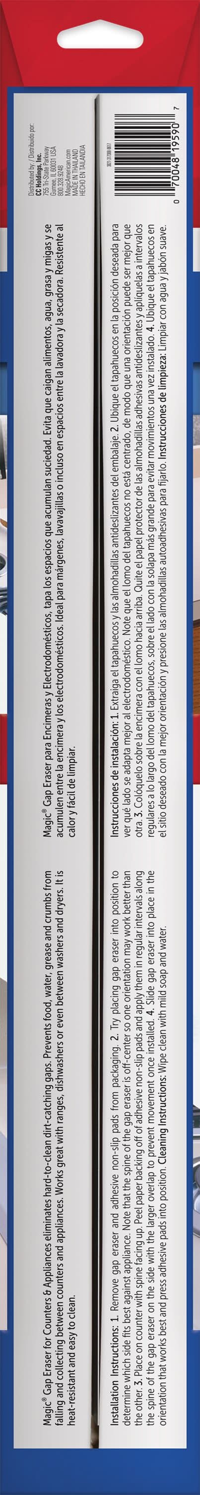 Simple - easy to install aluminum strip creates an easy to clean flat surface. Diverse - can be used to eliminate gaps between stoves, washers and dryers. Strong - the gap eraser is heat resistant so it won't melt when placed by the stove. Tight fit -keeps food or other objects from falling into gaps between appliances. Removable and easy to wipe clean. Color: White