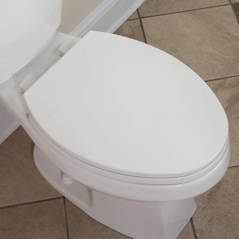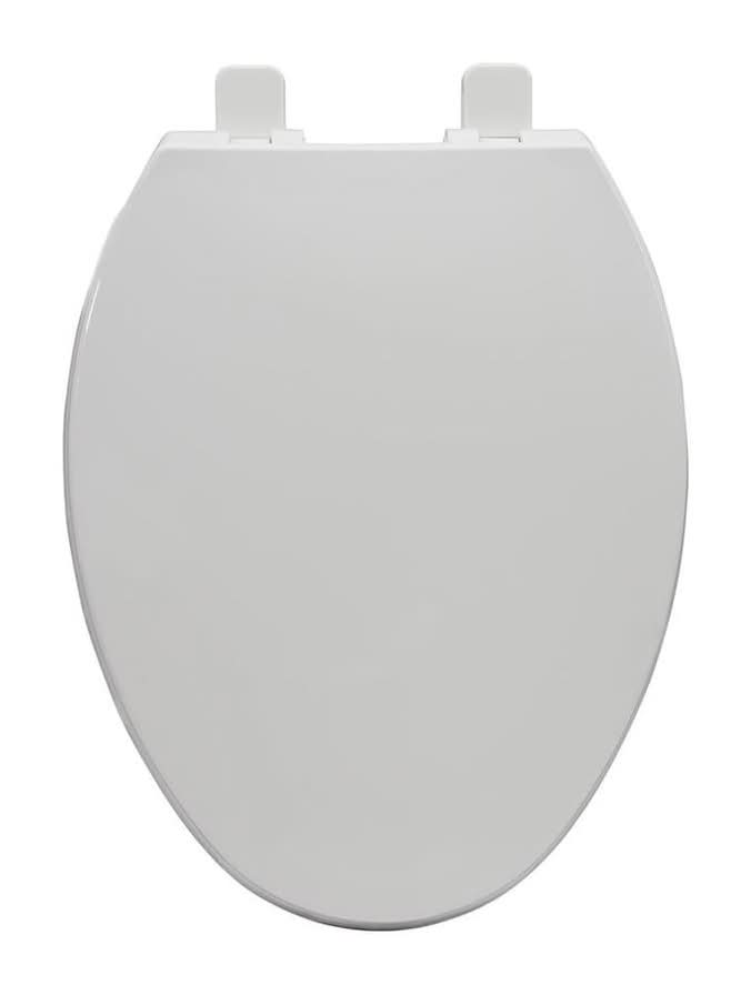 Slow close hinges eliminate slamming by lowering the lid smoothly and quietly. Durable plastic toilet seat with high gloss white finish. White hinges make for a uniform finish. Simple design make installation and cleaning a breeze. Color: White