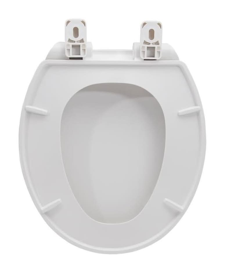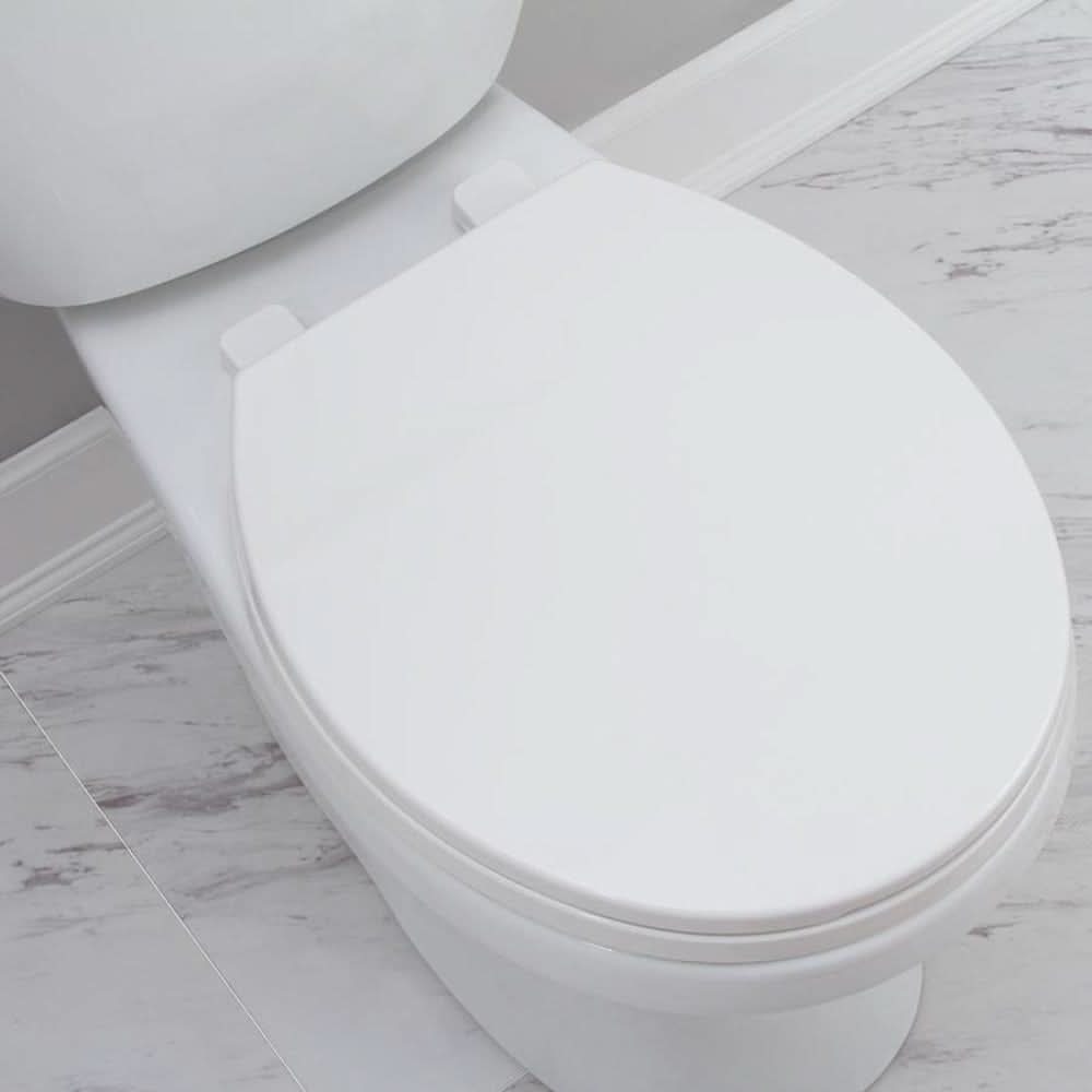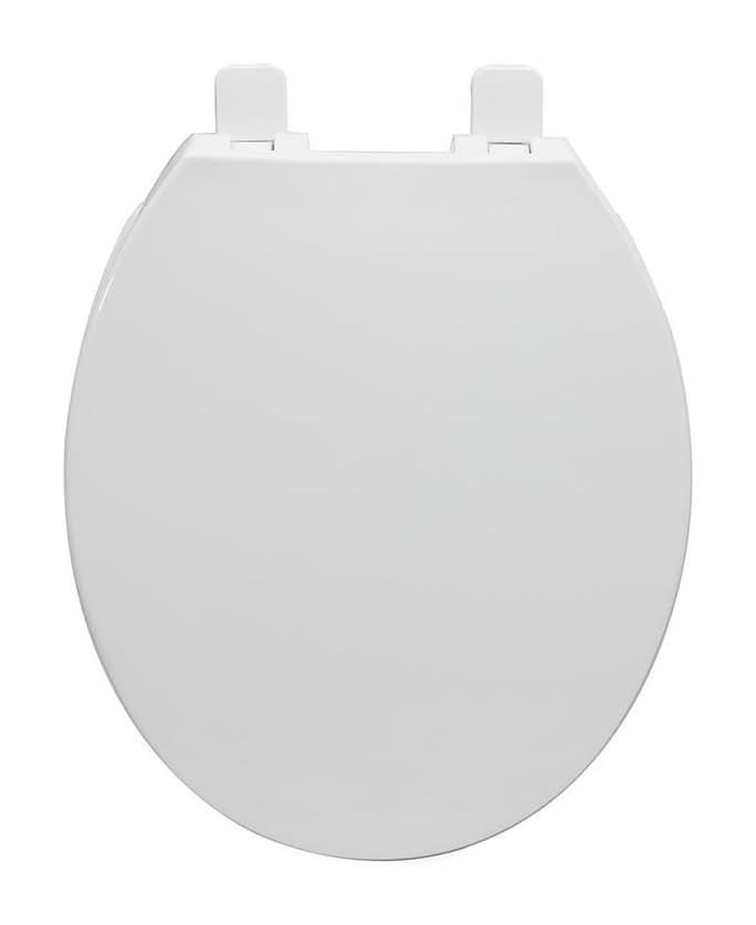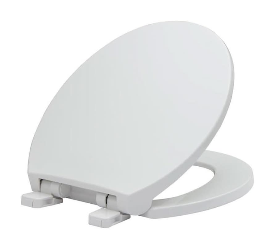 Slow close hinges eliminate slamming by lowering the lid smoothly and quietly. Durable plastic toilet seat with high gloss white finish. White hinges make for a uniform finish. Simple design make installation and cleaning a breeze. Color: White