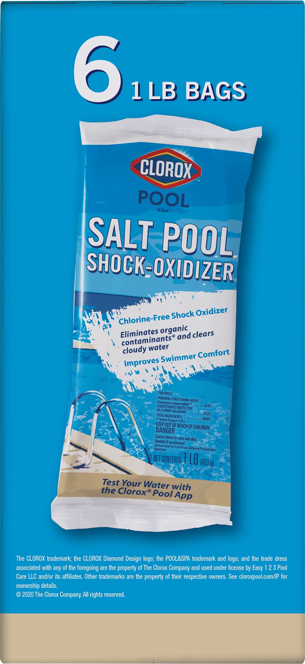 For clear, odor-free water in your salt pool. Eliminates organic contaminants. Granular chlorine-free formula. Great for salt pools. Apply product weekly to the deep-end of the pool with the pump running. This chlorine-free shock works fast to clarify pool water and reduce odors and swimmer skin and eye irritation. Download the Clorox® Pool App for expert water analysis and personal pool care recommendations.