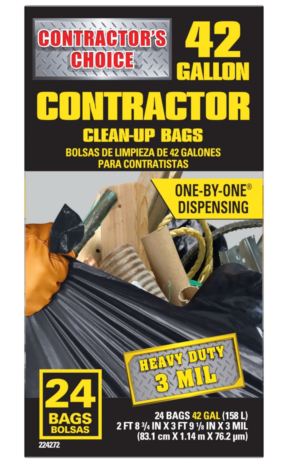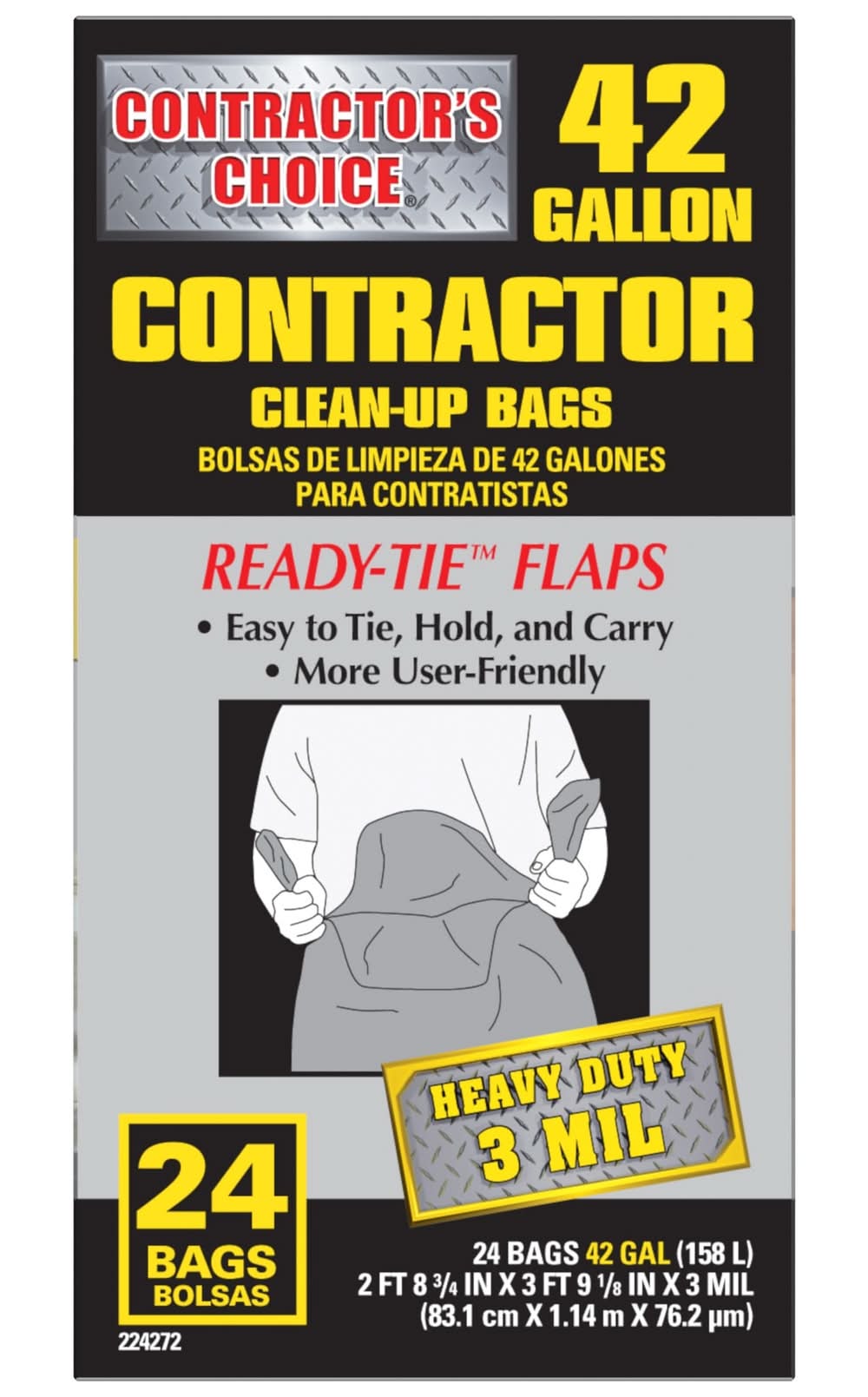 Contractor's Choice Contractor 42-Gallon Scent free Black Outdoor Plastic Construction Flap Tie Trash Bag 24 -Count