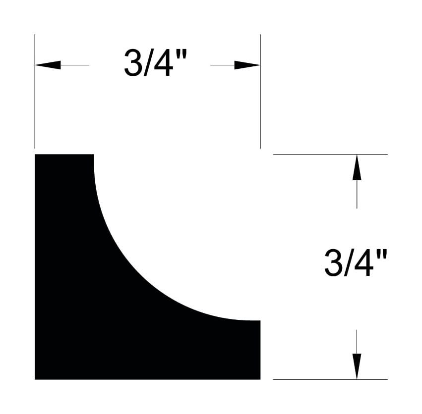 Royal WM93 profile Scotia Moulding is made here in the USA from 100% PVC. Finished white surface is ready to be installed or can be painted the color of your choice with 100% acrylic latex paint, even dark colors(consult installation guide for specifics). Each piece has dimensions of 3/4-in thick x 3/4-in wide x 8-ft long. Use Royal PVC Scotia moulding anywhere you need to hide a seam or provide a finishing touch to a board or moulding build up, great around windows, doors, floors, or anywhere you need a moisture proof trim solution. Royal PVC Moulding have a limited lifetime warranty, rot free and resistant to moisture and insect damage, will not split or crack. Use clear PVC adhesive in miter and scarf joints. Trims and installs with common wood working tools, secure with weather resistant fasteners, either stainless steel or hot dipped galvanized, if used in applications where there will be exposure to moisture. Suitable for exterior and interior applications, can be Installed direc Use Location: Interior/Exterior Color: White