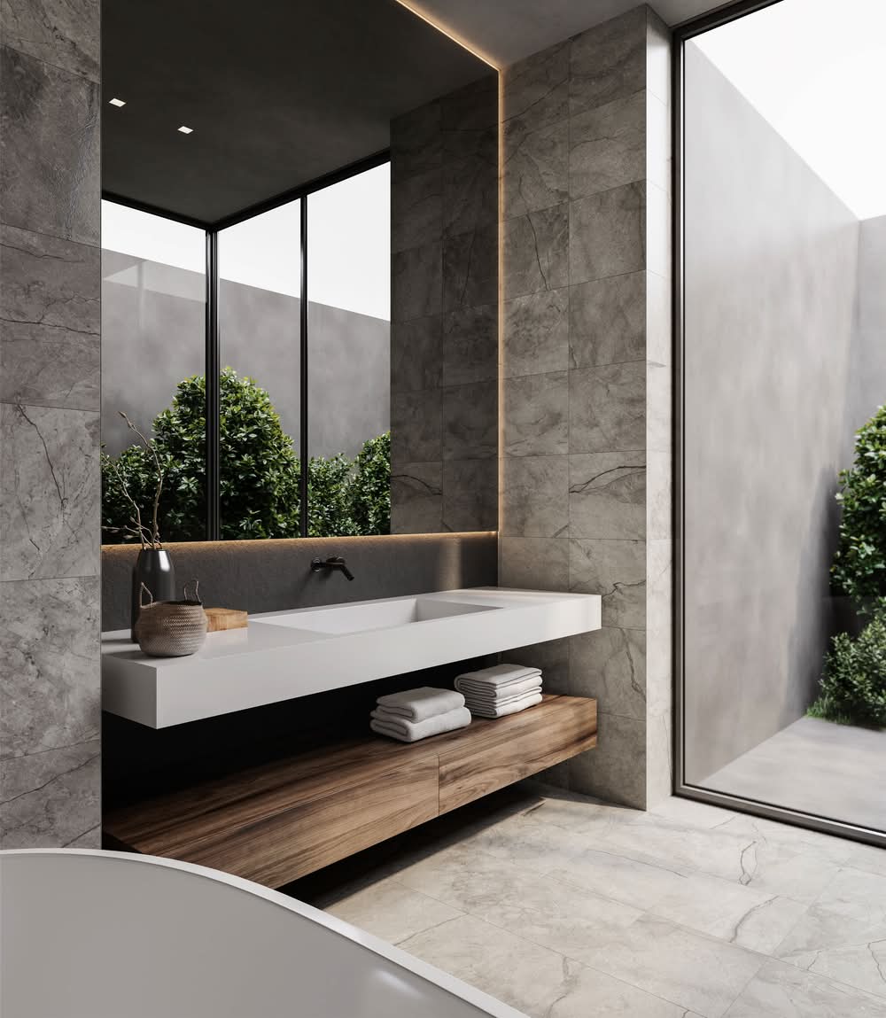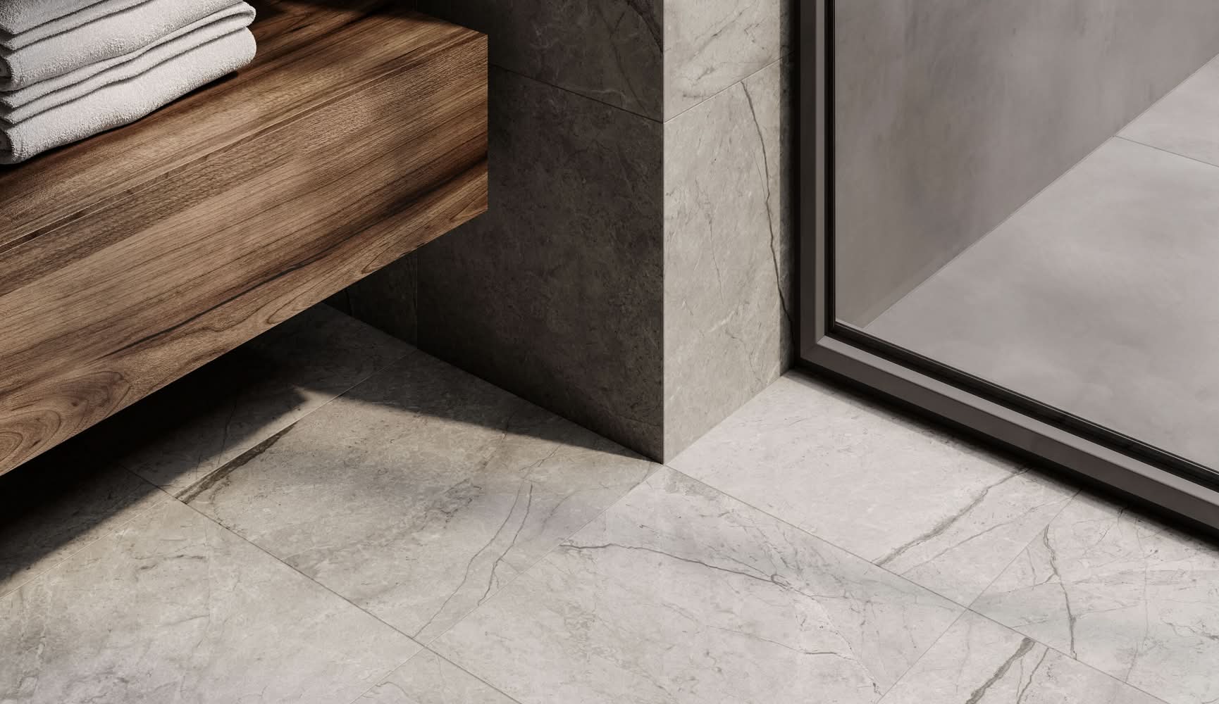 Matte finish stone look porcelain floor tile. This contemporary design is an easy way to add interest and style perfect for a back splash, wall or floor design. Gray color palette with a larger number of pattern variations provides less repetition for a realistic stone look. Use Location: Indoor