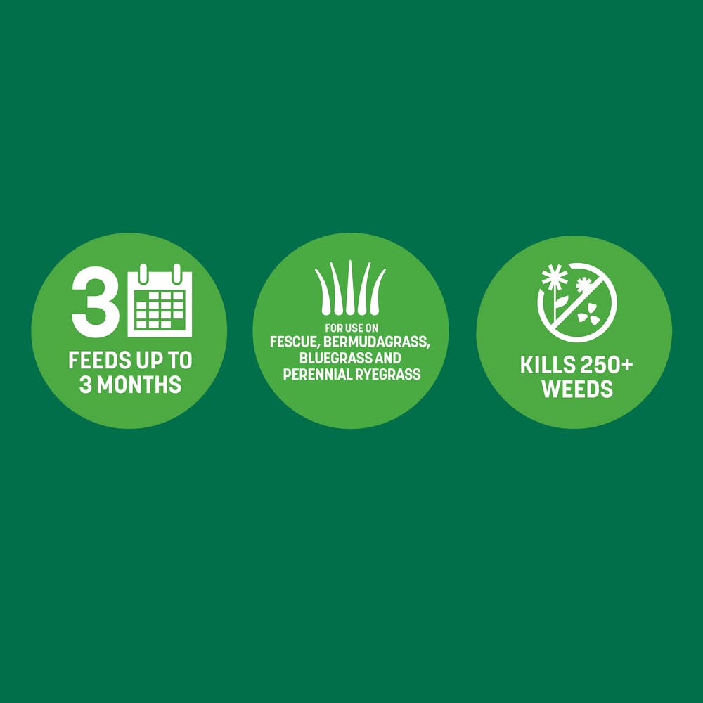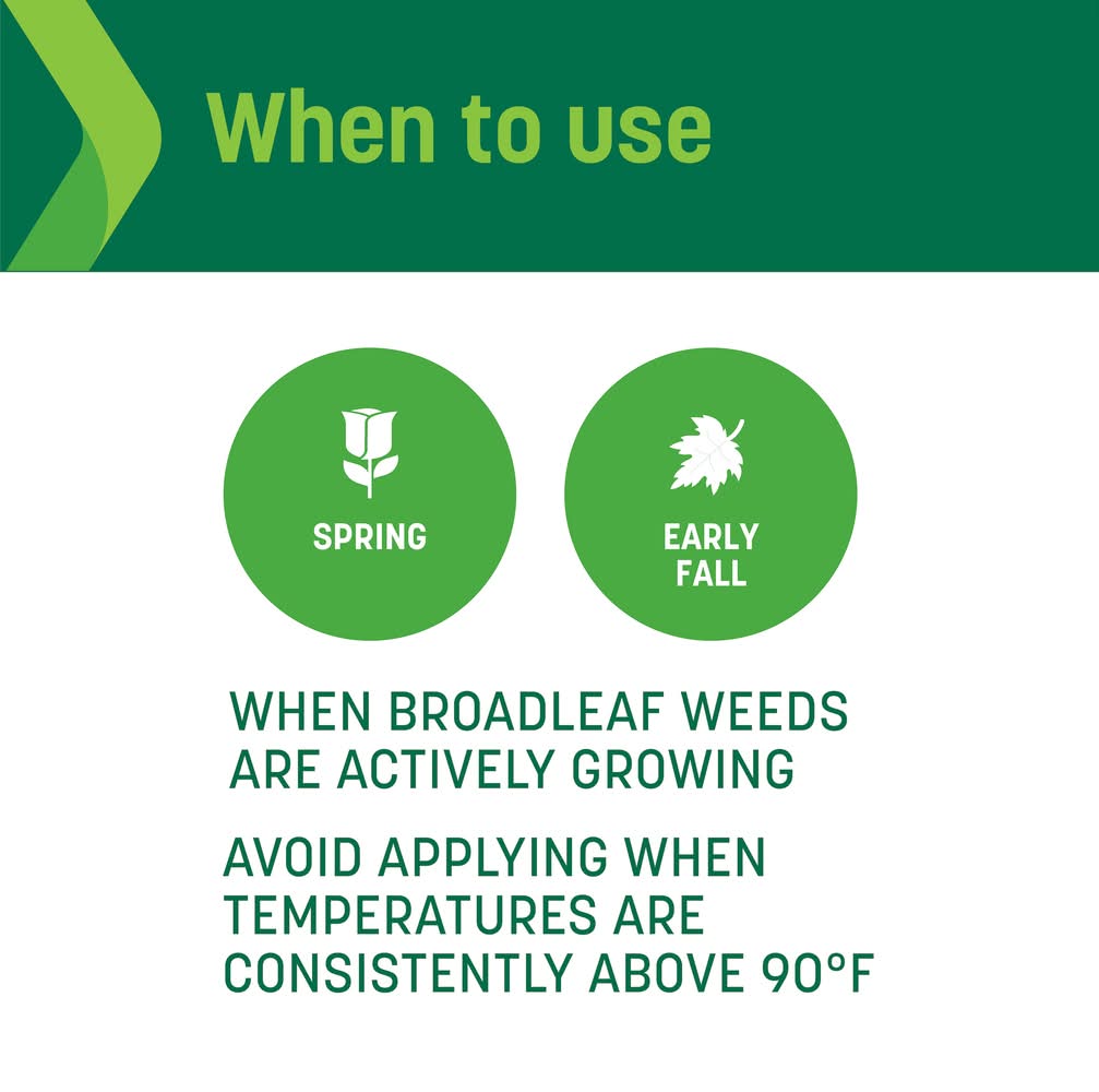 Kills 250+ tough weeds including dandelion, clover, chickweed, knotweed, plantain, henbit, and spurge. Feeds up to 3 months. Use on Kentucky Bluegrass, Fescue spp., Perennial Ryegrass, common Bermudagrass, Bahiagrass, Zoysiagrass, St Augustinegrass, Centipedegrass, hybrid Bermudagrass, and Colonial Bentgrass.. Phosphorous-free lawn fertilizer and weed control. Apply when broadleaf weeds are actively growing in Spring or early fall. Apply when the air is calm to ensure uniform coverage and avoid spreading granules onto flowers, vegetables and ornamental shrubbery. Possible retreatment may be necessary if lawn is heavily overrun by weeds, if adverse low moisture conditions prevail or if weeds are in a state of poor growth. Avoid applying when temperatures are consistently above 90ºF. Covers up to 12,000 SQ FT.