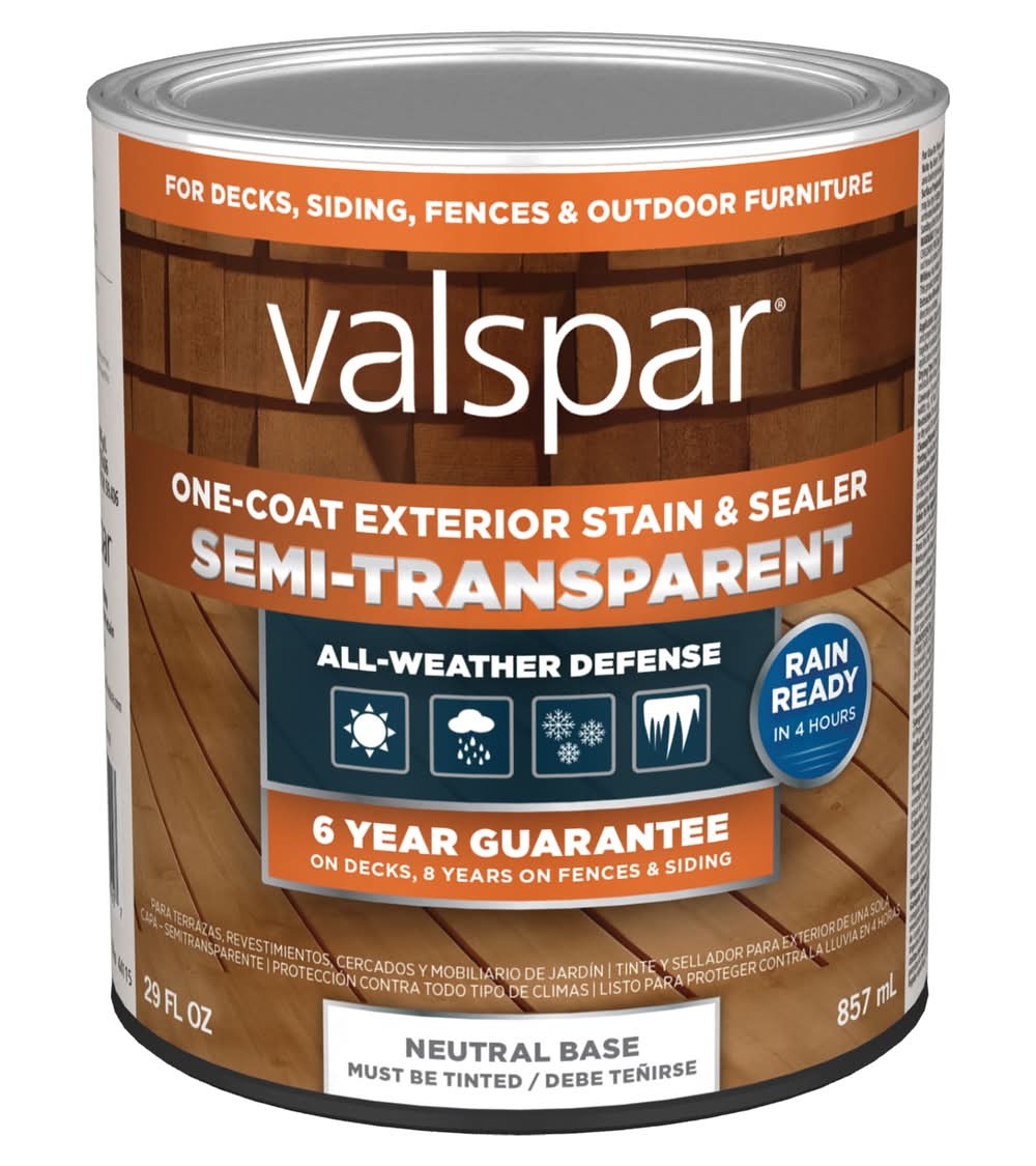 Valspar Neutral Base Semi-transparent Exterior Wood Stain and Sealer in One ( 1-quart )