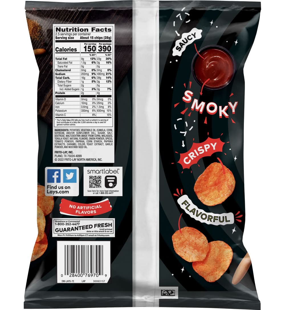 Barbecue seasoning adds even more flavor to LAY'S chip you love. Delicious LAY'S crunchy snack. Great for Grab & Go Snacking.