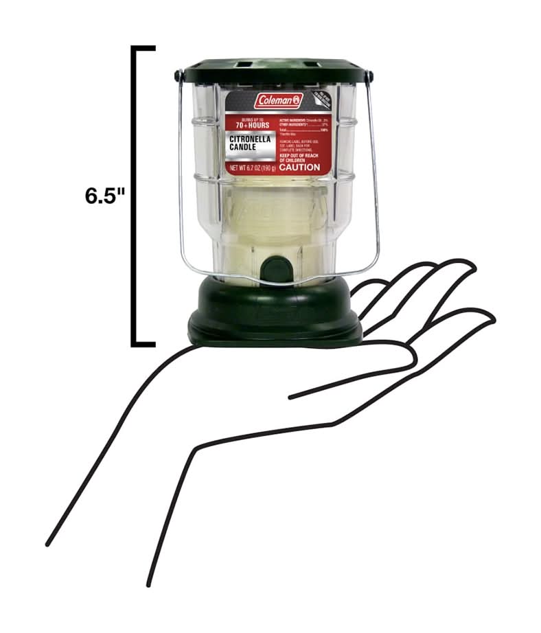 Provides ambiance and keeps nights peaceful with our unique Coleman lantern design. Repels mosquitoes. Unique citronella candle provides a pleasant ambiance and keeps nights peaceful. Burns up to 70 hours. Use Location: Outdoor Color: Green