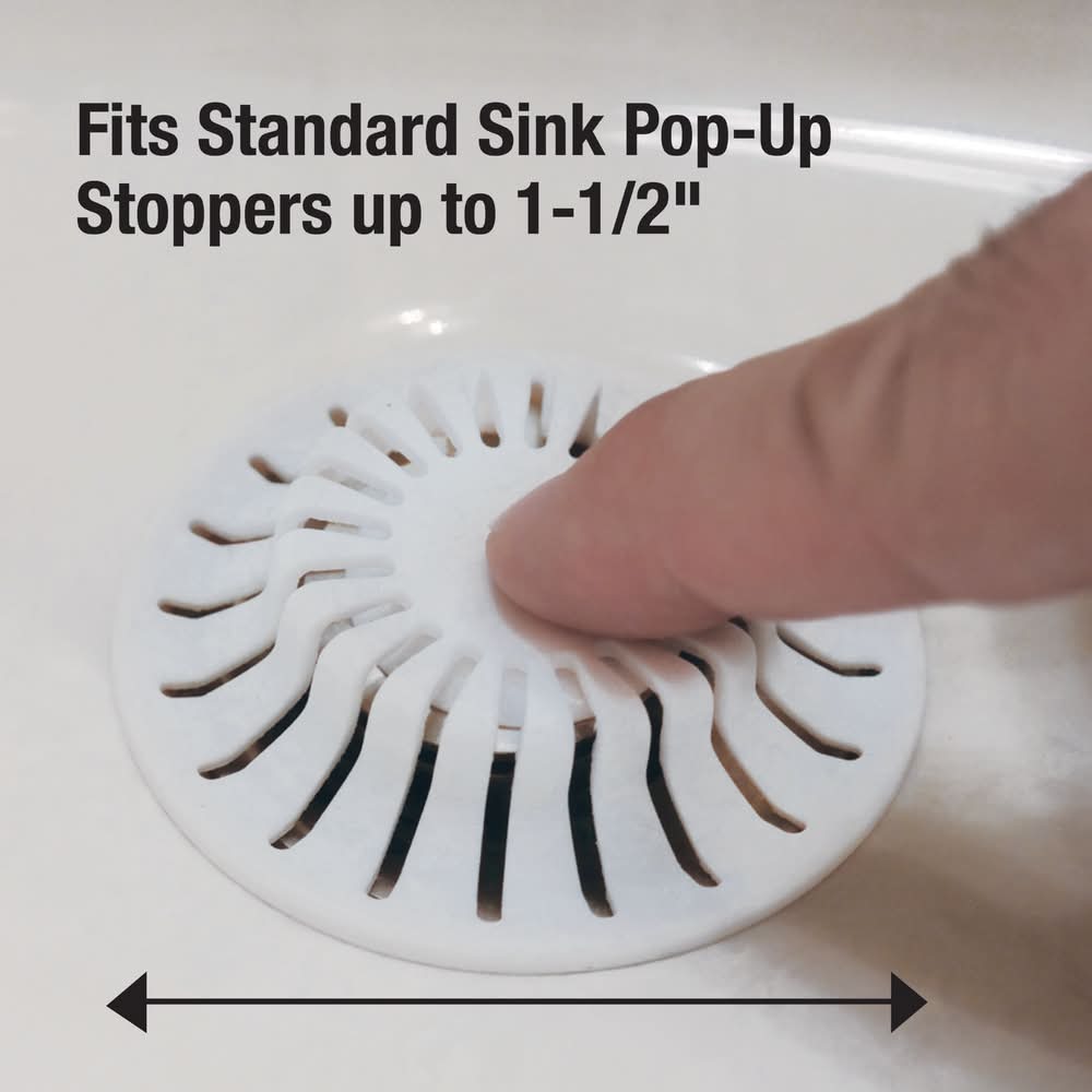 Prevent clogs in your bathroom sink drains by suction cupping the hair catcher strainer to the bathroom sink stopper head; this allows for the hair catcher to remain in place whether you are using the sink stopper or using it as a strainer. Fits most standard sink pop-up stoppers up to 1.5 inches. Durable silicone rubber can withstand harsh chemicals. White finish blends nicely with most existing bathroom sinks and bathroom fixtures. Easy to clean and maintain: simply detach the suction cup, wipe away hair, and place hair catcher strainer back over the bathroom sink pop-up stopper. Can stay in place when cleaning sink because of it’s strength to withstand harsh cleaning chemicals. For CA Residents Only: WARNING: This product can expose you to chemicals including Lead which are known to the State of California to cause cancer and birth defects or other reproductive harm. For more information go to www.P65Warnings.ca.gov.