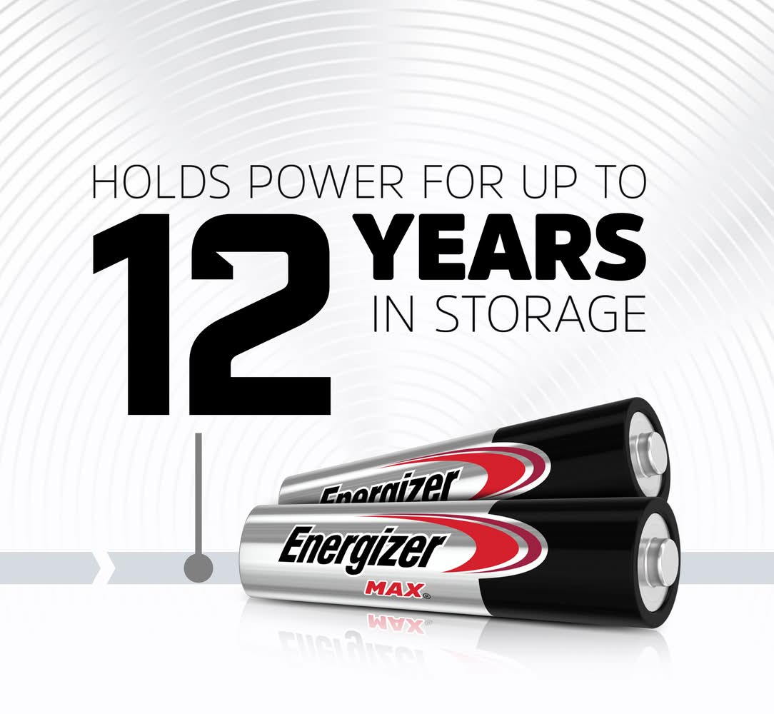 8 pack of Energizer MAX AAA Alkaline Batteries, Triple A Batteries. Energizer's longest-lasting MAX AAA batteries - up to 50% longer lasting than EVEREADY GOLD in demanding devices. Long lasting batteries for your AAA devices, like toys, games and remotes. Energizer MAX AAA batteries are designed to protect your devices against damaging leaks for up to two years after fully used. These Energizer AAA batteries hold power for up to 12 years in storage. Feel confident knowing you have the long-lasting power and protection you expect from Energizer.