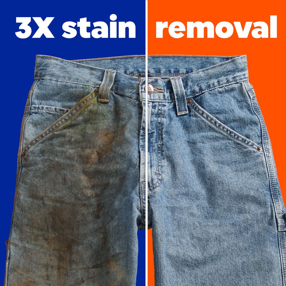 Tough on set-in stains, caked-on dirt, and tough odors. 3X more stain-removal power vs the leading competitive liquid detergent. Clean results with no pretreating or scrubbing. Works in all machines and water temperatures.