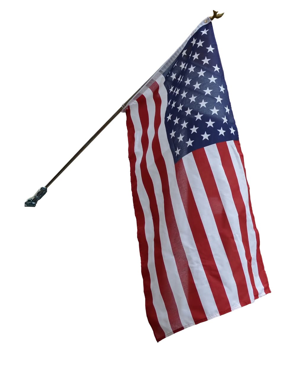 100% Made in the USA. 6 ft. 3-piece steel pole and mounting hardware. Flagpole bracket and 5 in. gold eagle ornament. Flag is color fast, tear resistant, and fast drying. Use Location: Outdoor Color: Multiple colors/finishes